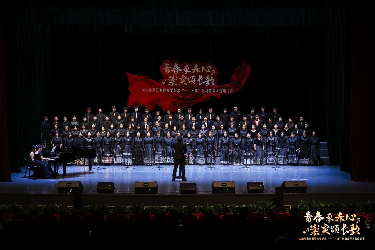 本网讯 为纪念“一二·九”运动九十周年,进一步传承和弘扬爱国主义精神,展现新时代青年的良好风貌,12月9日,2025年浙江财经大学纪念“一二·九”运动青年大合唱比赛在普华大剧院举行。专家评委、校团委负责人、各二级学院团委书记以及1000余名师生代表参加了本次活动。在比赛现场,歌声嘹亮、曲乐益彰,展现出浙财青年们昂扬向上的朝气与团结奋进的时代主旋律。各参赛队伍通过对经典曲目的演绎,抒发深厚爱国情怀,生动诠释了...