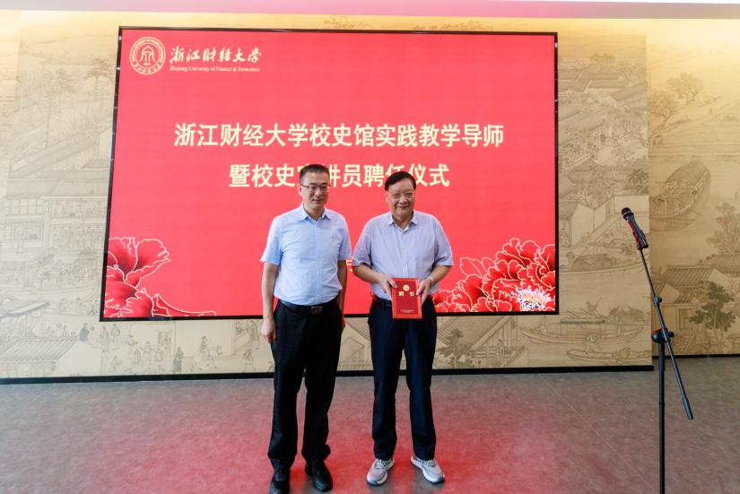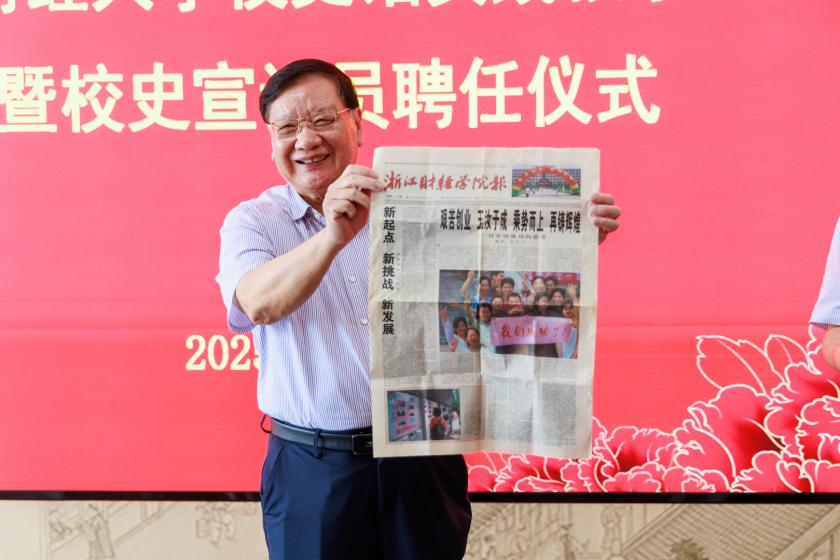 徐晓东在致辞中向受聘老教师代表童本立教授和校史馆讲解员队伍表达了感谢,他表示,校史是一所大学的文化根脉,校史馆不仅是展示学校建设成果的窗口,更是以文化人的“第二课堂”。要依托校史馆丰富的展陈资源,培养一支“懂历史、会传播、善创新”的宣讲队伍,持续深化浙江财经大学“使命文化”建设,为扎实推进高水平大学建设积蓄强大内生力量。他指出,老教师们是学校的宝贵财富,亲身创造了学校从专科到大学的跨越,不仅是校史传承的“引路人”,也是文化宣讲的“活教材”,希望老教师能以亲身经历赋能青年一代,为学校建设发展继续发光发热。