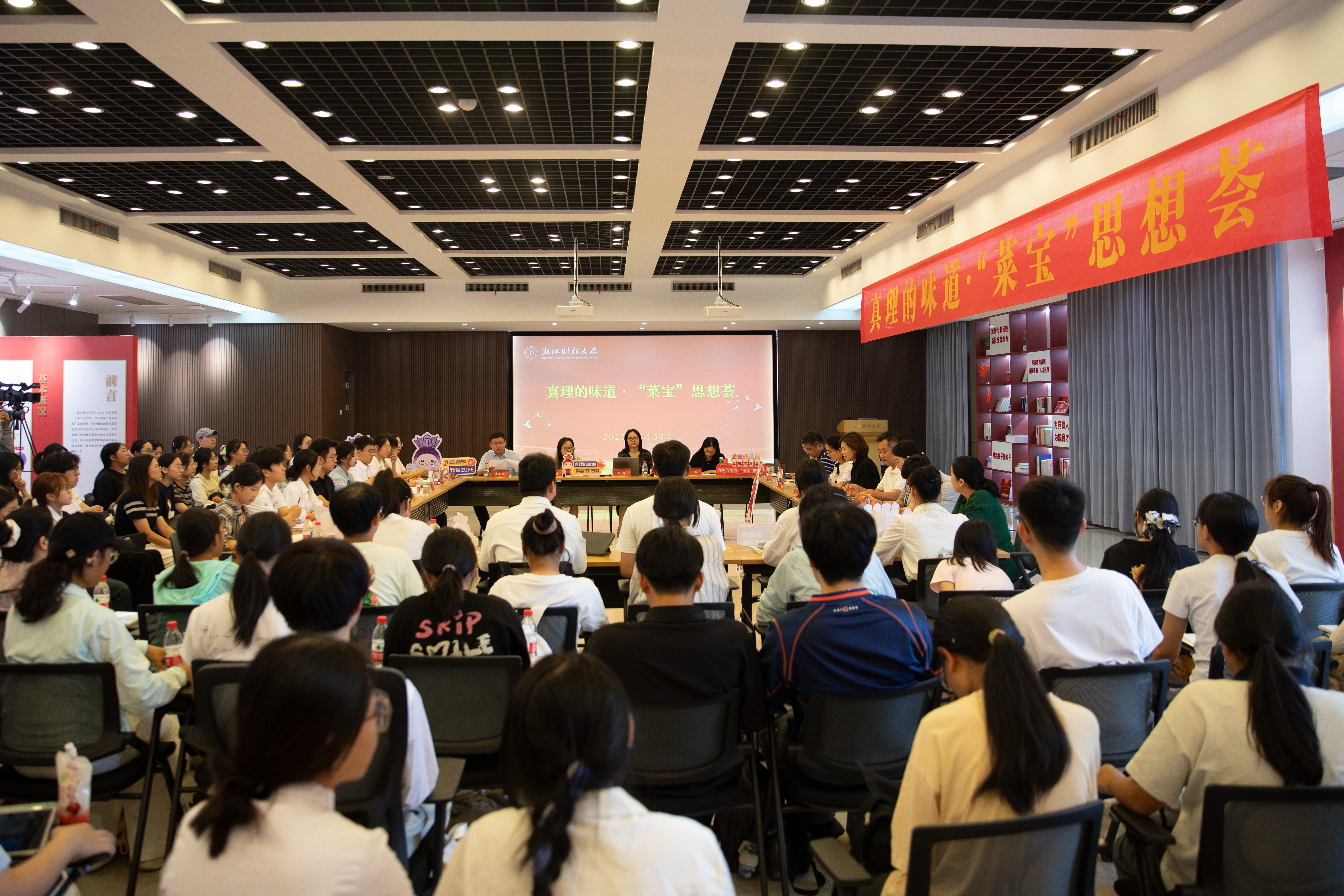本网讯 为推动党的创新理论入脑入心,9月30日下午,党群服务中心内思想碰撞,“真理的味道・‘菜宝’思想荟”首期活动在此启幕。本次活动聚焦《习近平文化思想学习纲要》,通过领学解读、多维分享、互动研讨的方式,引导师生精准把握思想精髓、深刻理解核心要义,让真理的“甜味”真正浸润心灵、融入行动。