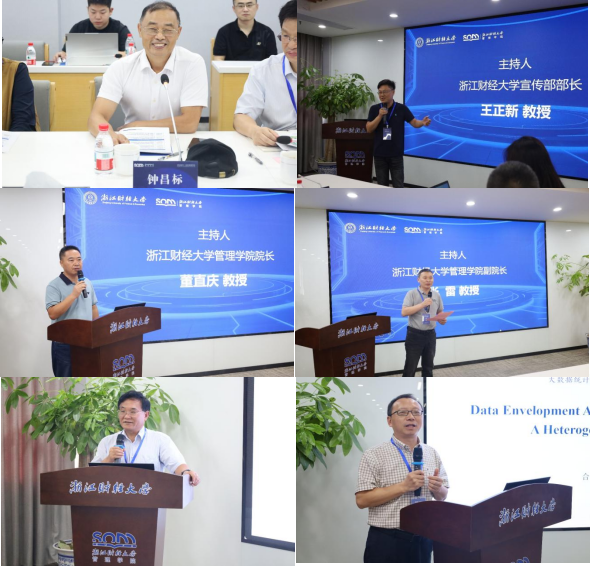 本次研讨会开幕式由学校管理学院院长董直庆教授主持,报告环节由广州商学院副校长钟昌标教授、我校宣传部部长王正新教授、管理学院副院长张雷教授等领衔主持。东北财经大学原副校长王维国教授围绕“数字金融发展的碳减排效应——来自家庭消费侧的微观调查证据”主题,指出数字金融发展有助于降低家庭消费碳排放,而家庭消费结构升级和公众环保意识提升则是重要影响途径。这一效应主要体现在地区数字基础设施更完善、数字设备可及度更高,以及数字技能和偏好更强的家庭。合肥工业大学副校长吴华清教授带来了“Data Envelopment Analysis in Streaming Data Contexts:A Heterogeneity-Oriented Approach”的报告,研究面向时间异质性与空间异质性,提升效率评价结果的真实性与稳健性,并为流数据环境下的实时监测与预警提供更加可靠的决策支持。与传统模型相比,考虑了时间异质性和空间异质性的模型能够更准确地评价决策单元绩效。在保证决策单元绩效评价准确性的同时,实现对新进流数据的快速、近实时计算,充分发挥流数据的实时应用价值。