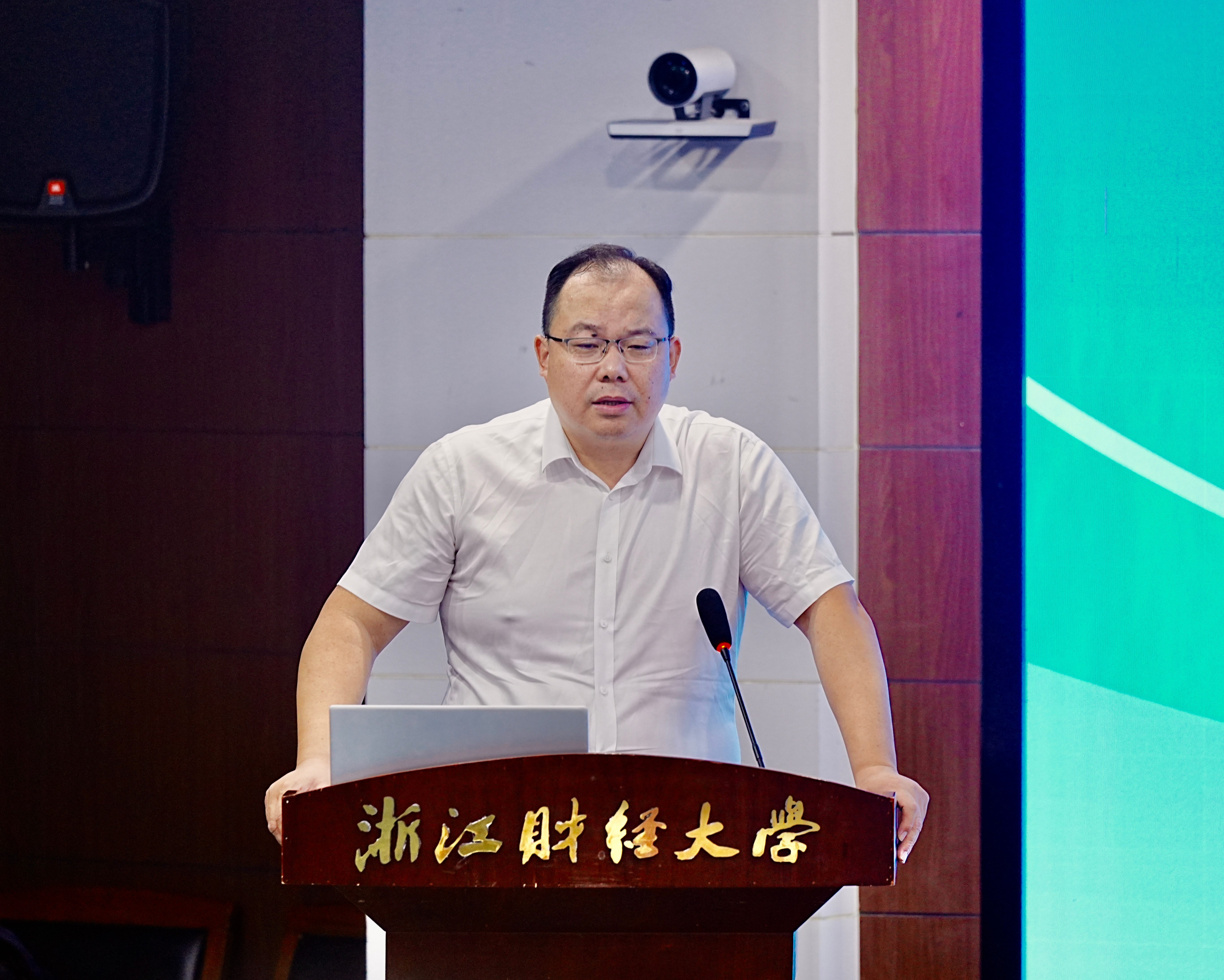 蒋震向我校师生细致周到的前期准备工作表示感谢。他表示,社科大与浙财大同为学术研究、创新思维和社会服务的阵地,共同使命是为国家培养兼具人文精神与科学素养的优秀人才,为社会的发展贡献智慧与力量。他希望社科大学子充分利用资源,拓宽学术视野,提高研究能力,在与浙财大师生的交流中互学互鉴。