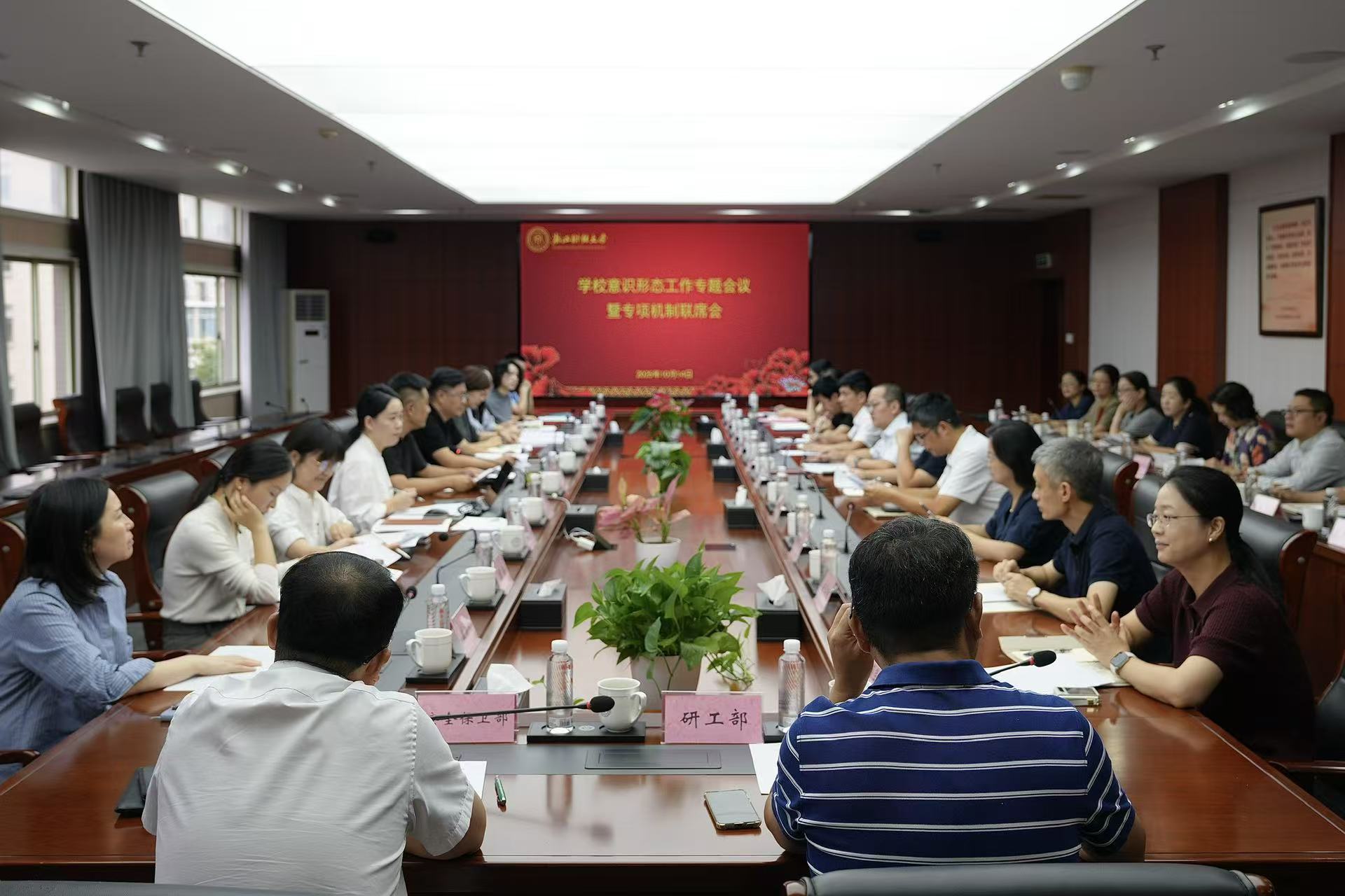本网讯 为进一步加强意识形态工作责任制的落实,10月14日,学校召开意识形态工作专题会暨专项机制联席会。会议传达学习相关文件精神,认真研判学校意识形态领域风险,并就下一步工作作了研究部署。校党委副书记程爽主持会议,相关职能部门负责人、各二级党组织书记参加会议。