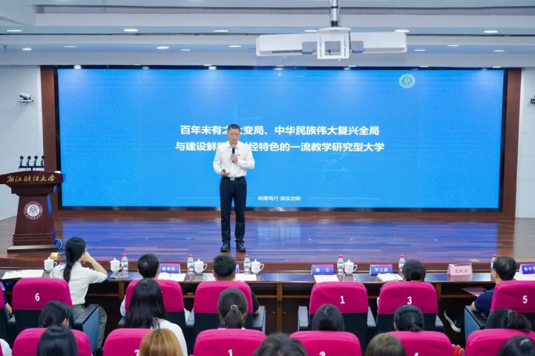 魏江以《以“浙财人”名字去改变中国》为题,给文华创新学院2025级本科生上了一堂思想深刻、视野开阔的“开学第一课”。他以历史为经、以时代为纬、以使命为梭,引领学子们穿梭于历史与未来之间,共同探寻时代坐标下的个人使命与担当。