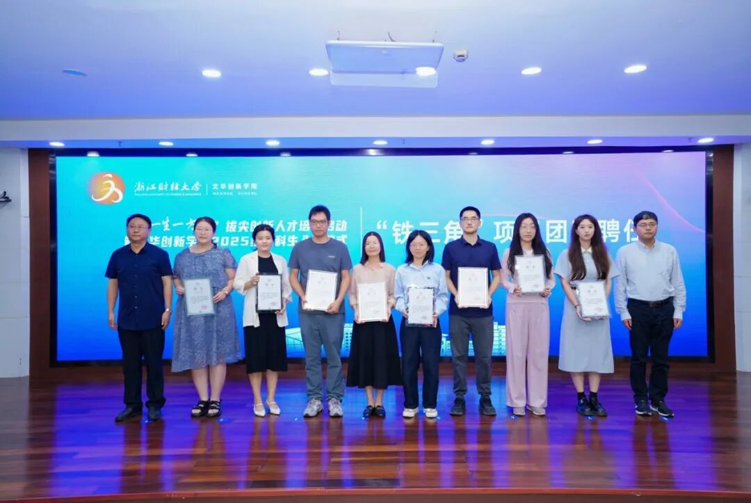 李占荣,何贤杰以项目主任身份,给三个“铁三角”项目团队的8位成员颁发聘书。