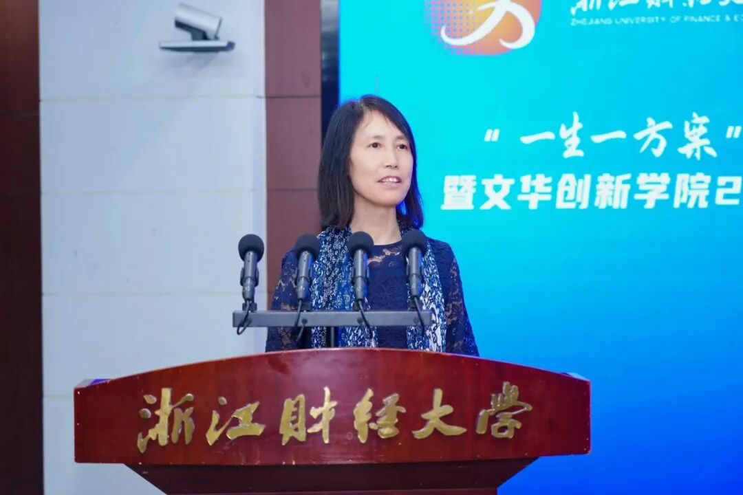 浙江天平审计集团的董事长余俊仙作为项目实践专家代表发言。她表示将倾力支持“一生一方案”拔尖创新人才培养,为学生带来最前沿的行业洞察与实践智慧。