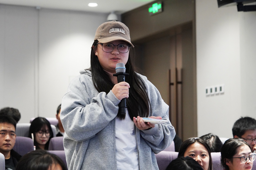 在互动问答环节,现场学生踊跃提问,胡梅奎对学生们的问题一一进行了耐心细致地解答。