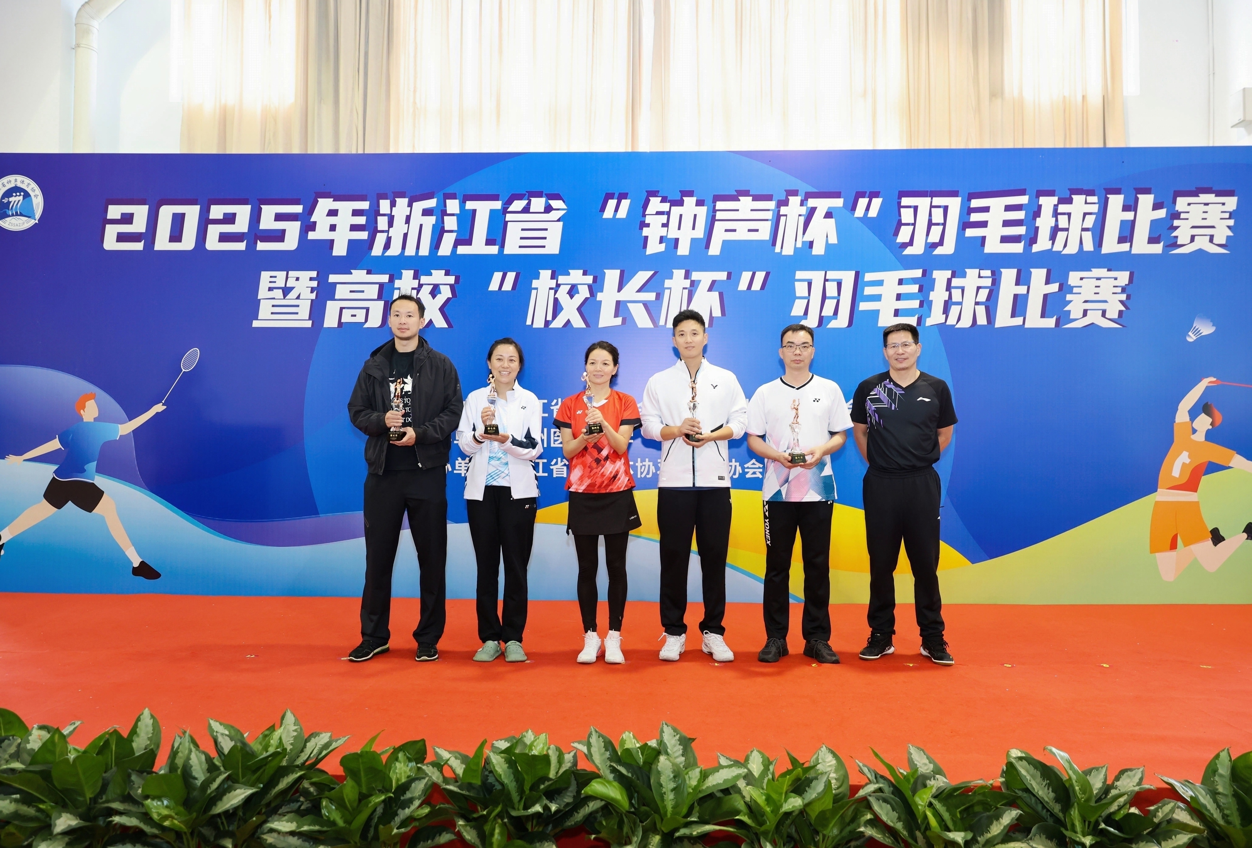 本网讯 10月23日至25日,2025年浙江省“钟声杯”羽毛球比赛暨省高校“校长杯”羽毛球比赛在温州落下帷幕。我校代表队在校党委副书记徐晓东的带领下,凭借精湛的球技、默契的配合与顽强的拼搏精神,在全省36支高校代表队、600余名参赛教职工的激烈角逐中脱颖而出,斩获高校混合团体赛第五名的优异成绩。