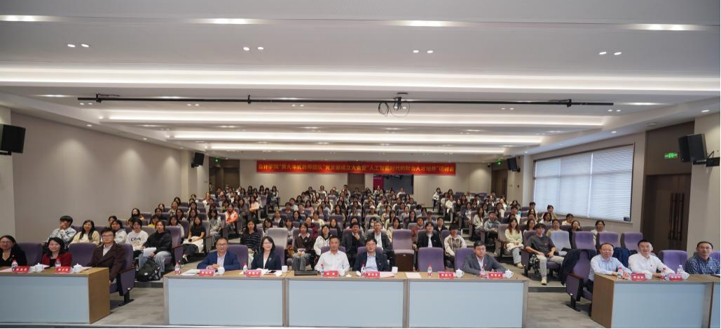 本网讯 10月27日,学校会计学院“黄大年式教师团队”党支部成立大会暨“人工智能时代的财会人才培养”研讨会在图书馆报告厅举行。校党委副书记程爽,校党委委员、副校长何贤杰,浙江审计科学研究所所长曹致平、党支部书记桂春荣,上海财经大学会计学院院长靳庆鲁、副院长曾庆生,中山大学管理学院党委书记张俊生,中央财经大学会计学院党委书记陈运森,中国人民大学商学院党委副书记廖冠民,蚂蚁集团百灵大模型代码数学负责人刘子奇等出席活动,会计学院领导班子成员、师生代表200余人参加活动。