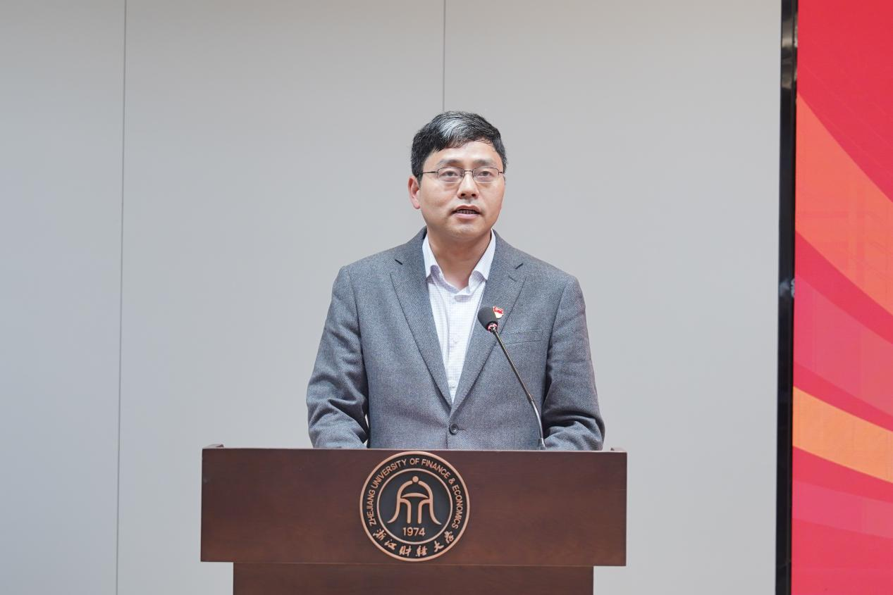 何贤杰介绍了会计科学智能实验室相关情况,强调了实验室成立于“推动会计学科的革新”和“融入浙江的人工智能发展热潮”的两大背景,表示要以高质量的党建引融,全面加强实验室支部的建设,促进浙财会计学科的长足发展,为人工智能时代的学科发展与人才培养探索新路径。