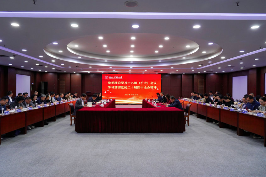 本网讯 10月30日,学校召开党委理论学习中心组(扩大)会议,传达学习贯彻党的二十届四中全会精神,学习《习近平谈治国理政》第五卷以及《中国共产党思想政治工作条例》。校党委书记、校长魏江主持会议并讲话。校党委理论学习中心组全体成员,各二级党组织书记、相关职能部门负责人参加会议。