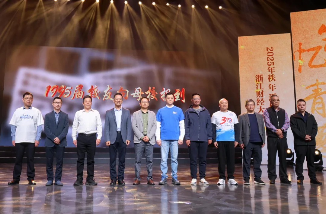 上午10时,学校2025年秩年返校纪念大会在普华大剧院举行。浙江财经大学党委书记、校长魏江,副校长李占荣,校党委副书记徐晓东,校党委副书记程爽,校党委委员、组织部部长、东方学院党委书记申屠莉出席大会。相关职能部门负责人,各学院院长、书记,分管校友工作领导及校友总会理事会成员,以及1985届、1995届、2005届、2015届秩年返校班级代表及师生代表参加大会。