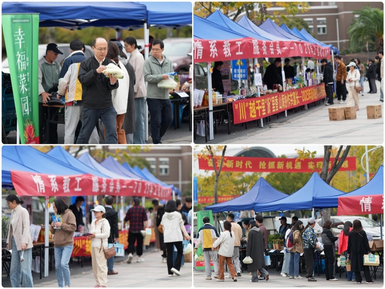 本次健身走同步开展“情系教工 服务会员”惠民活动,学校后勤“幸福菜园”农产品分享、绿植花卉销售及银行业务办理等活动受到广大教职工欢迎。同时,本次健身走创新融合“党的二十届四中全会公报学习手账展览”与 “‘川’越千里‘浙’里香——2025年浙川协作消费帮扶产品高校巡展”两项主题活动。教职工在健身走途中,既能通过手账展览深入学习党的二十届四中全会精神,强化思想引领,实现“体魄与精神双提升”,又可选购来自四川的特色助农产品,以实际行动支持山海协作与共同富裕。