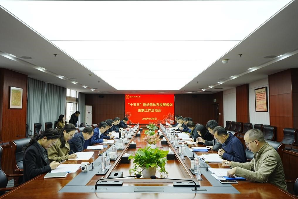 本网讯 11月5日,学校召开“十五五”新培养体系发展规划编制工作启动会。校党委委员、副校长董进才,校党委委员、副校长何贤杰出席会议并讲话,新培养体系发展规划编制工作小组全体成员参加会议。
