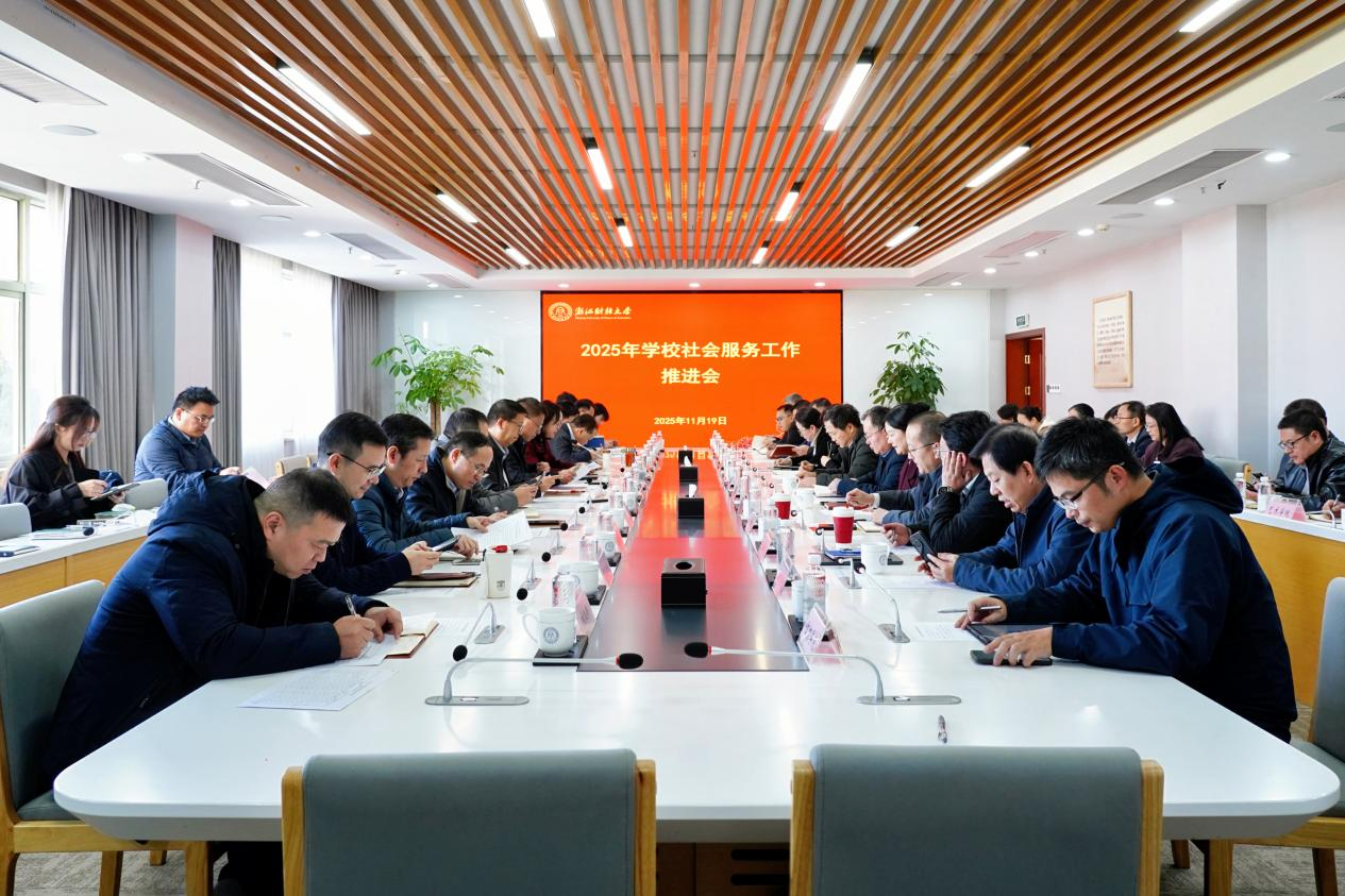本网讯 11月19日,学校召开2025年社会服务工作推进会,校党委书记、校长魏江出席会议并讲话,会议由副校长郑亚莉主持。相关职能部门负责人、各学科性学院和研究院主要负责人参加会议。