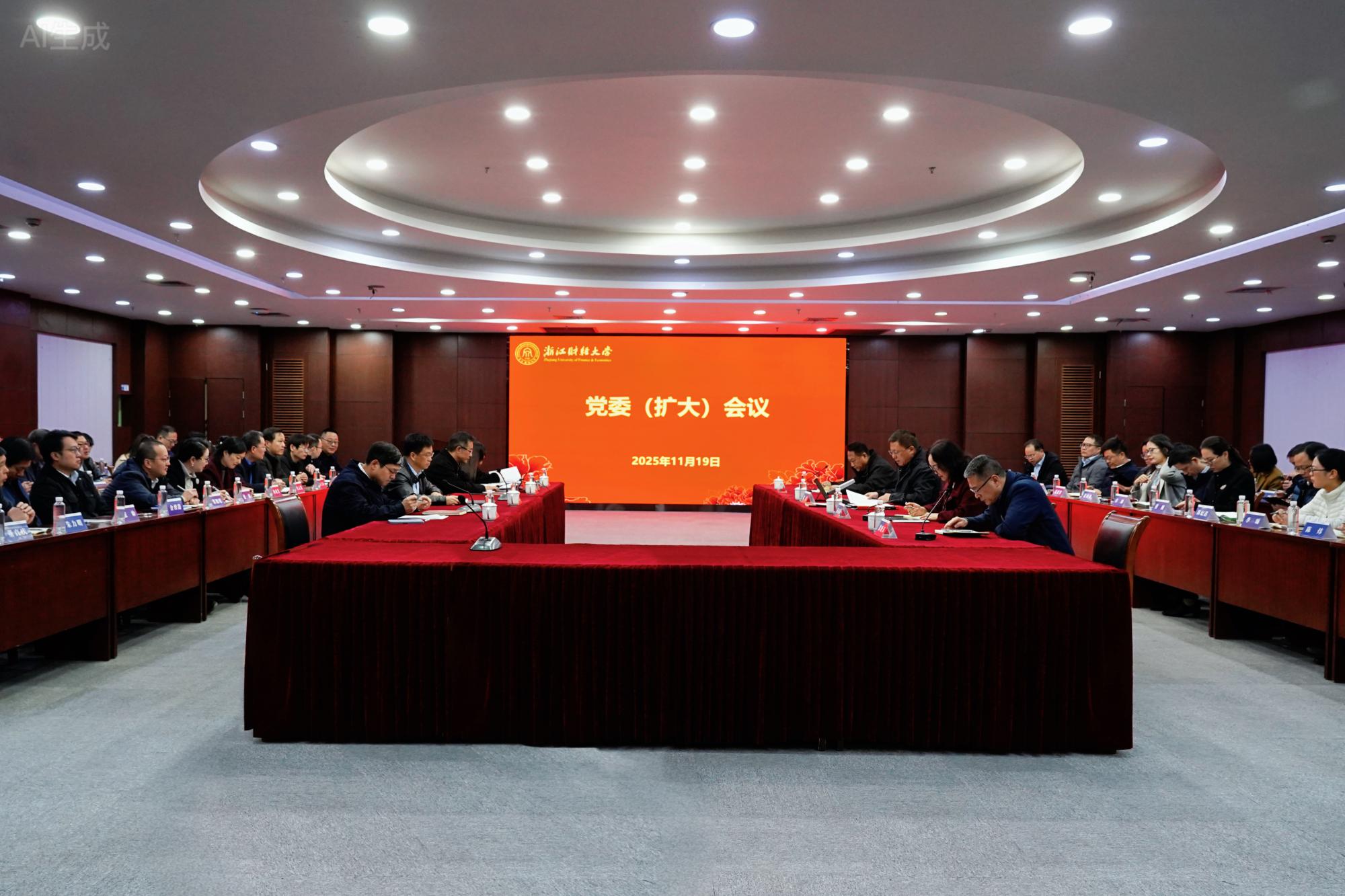 本网讯 11月19日,学校召开党委(扩大)会议,专题传达学习省委十五届八次全会精神,研究部署学校贯彻落实举措。校党委书记、校长魏江主持会议并讲话,校领导班子成员、各部门、各单位主要负责人参加会议。