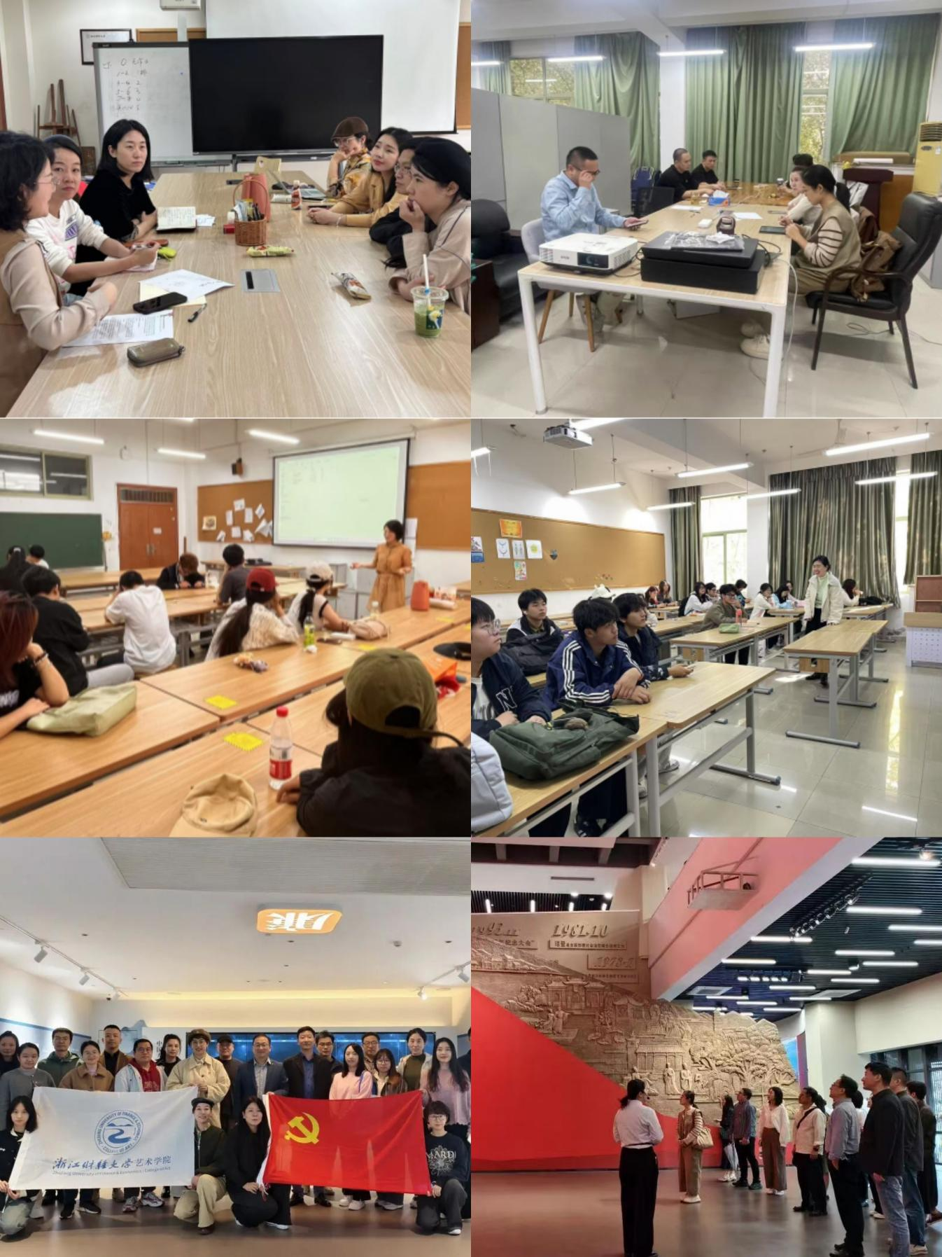 学院党委第一时间统筹部署,构建“党委统领、支部联动、全员参与”的大讨论格局,迅速掀起研讨热潮。全院10个系(办、中心)、6个师生党支部围绕“艺术学科的时代使命与担当”“新财经背景下艺术人才培养新路径”等核心议题,开展专题研讨20余场,实现师生全覆盖。通过思想碰撞,全院师生凝聚共识:浙财使命根植浙江、服务国家、面向全球,艺术学科当以“以美育人、以美化人”为初心,在“新财经战略”引领下,培养兼具艺术素养、复合能力与创新精神的高素质人才。理论武装与实践赋能双向发力,让使命文化落地生根。“艺样红”党建品牌持续焕彩,师生赴绍兴“枫桥经验”陈列馆、杭州大运河清廉文化展开展沉浸式研学,在红色文化与廉洁文化中汲取精神养分;深化省“百个艺术院系联村共建”“双带头人”教师党支部书记“强国行”项目,党员师生带头深入乡村开展艺术乡建、公益美育等志愿服务,让艺术之花绽放在基层一线,以实际行动践行使命担当。