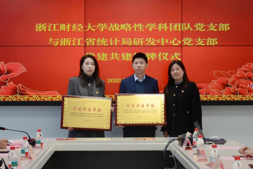 省统计局研发中心党支部与新经济统计监测与智能决策研究团队党支部签署共建协议,申屠莉为共建单位授牌。