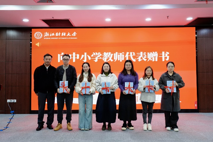 现场还举行了赠书仪式。程爽向学校附属学正中学、听涛小学、文海凌云小学等6位中小学教师代表赠送由我校“八八战略”研究院策划的主题漫画图书《一张蓝图绘到底》等并作点评。