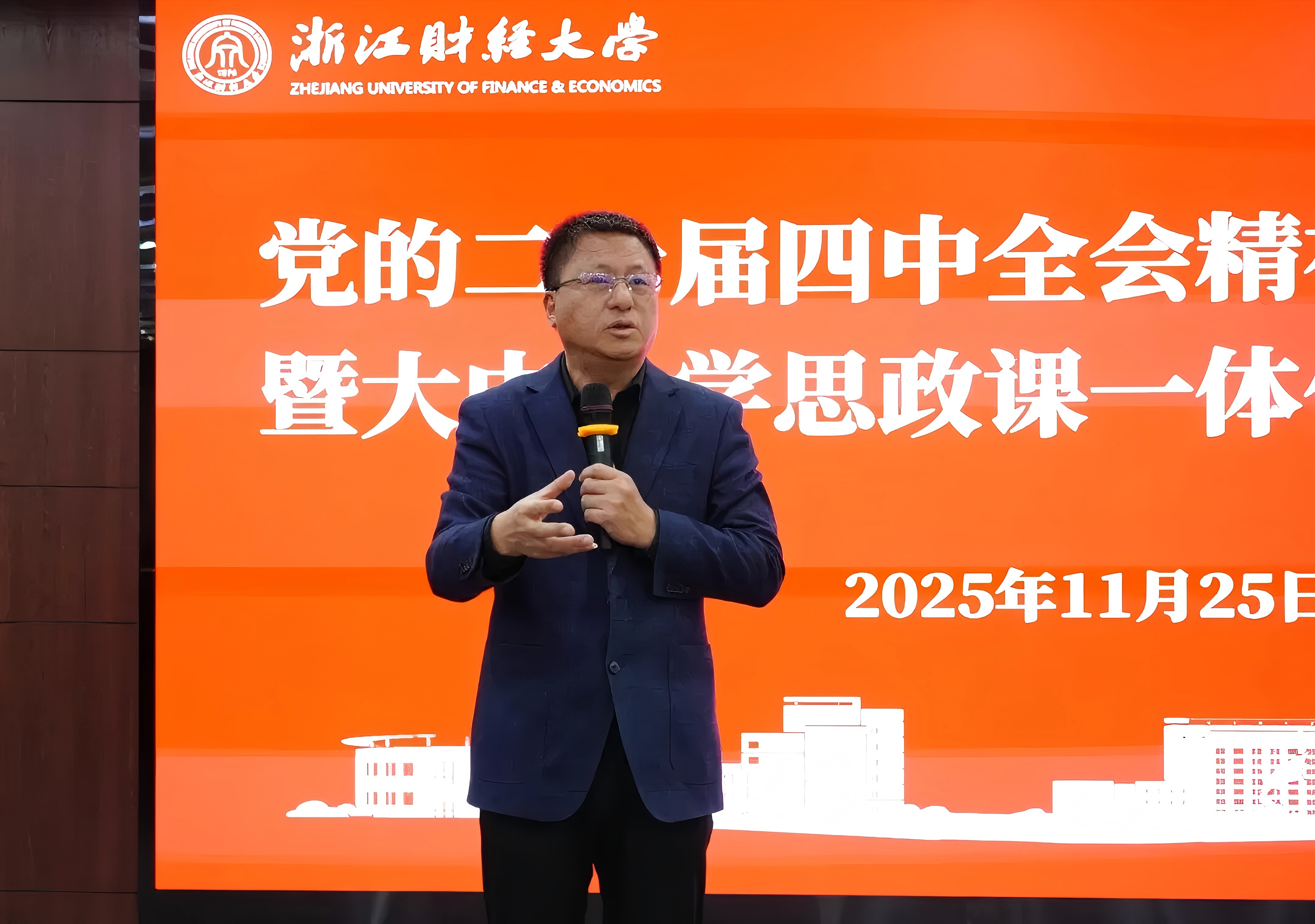 魏江指出,党的二十届四中全会是在即将进入基本实现社会主义现代化、夯实基础、全面发力的关键时期召开的一次十分重要的会议。思政课作为落实立德树人根本任务的关键课程,将党的二十届四中全会精神融入思政课教学,是高校回应时代使命、培育时代新人的核心举措。全体思政课教师要提高政治站位,强化使命担当,着力推动全会精神学习宣传贯彻落实。他强调,马克思主义学院的建设要立足党和国家事业发展全局,要以马克思主义理论为核心引领,依托学校财经学科优势构建“马克思主义理论+财经特色”的思政课程体系,凝心聚力打造政治坚定、学术精湛、作风优良的思政精兵,为思政课提质增效、落实立德树人根本任务提供坚实支撑。要锚定“新财经”战略方向,实现全会精神与育人体系的高位对接;要聚焦“K+MAQ”型人才培养核心,确保价值引领贯穿教育全过程;要构建“大思政”协同格局,凝聚育人合力提升教学实效。