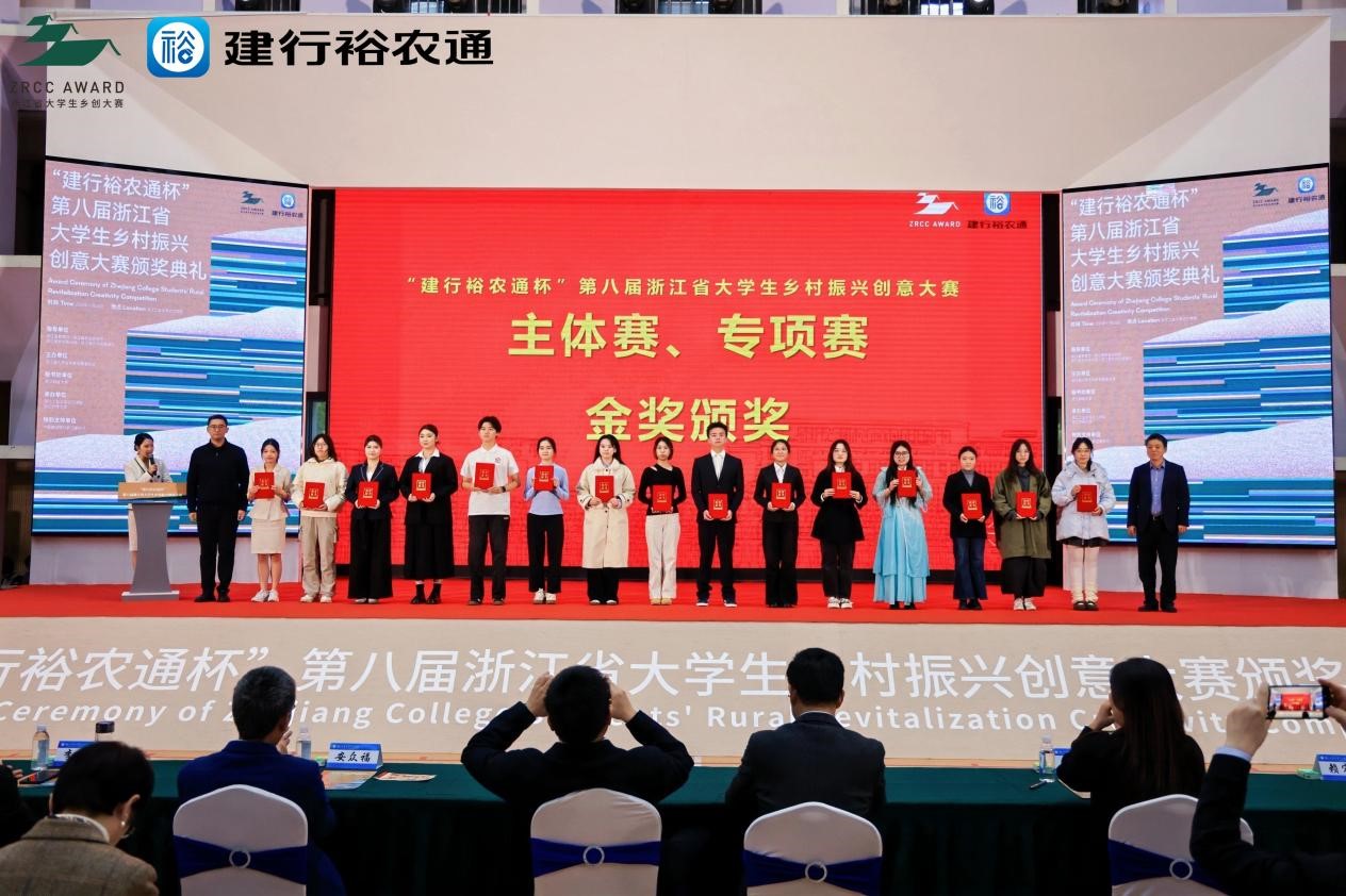 本网讯 近日,由我校作为秘书处单位,浙江工业大学之江学院、浙江农林大学承办的“建行裕农通杯”第八届浙江省大学生乡村振兴创意大赛闭幕式暨颁奖典礼举行。经过激烈角逐,我校共获得金奖6项,银奖7项,铜奖6项,并荣获“高校优秀合作组织奖”。校党委委员、副校长董进才出席仪式并致辞。