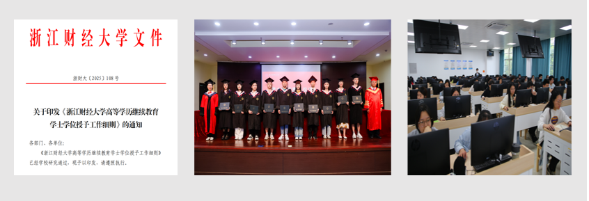 在学历教育领域,学院致力于内涵建设与精细化管理。举行开学典礼、毕业典礼暨学位授予仪式,营造浓厚育人氛围,增强学生的归属感与荣誉感。在2025届学生毕业典礼上,共有3943名学生完成学业,其中1183人荣获学位,满载收获奔赴新征程。同时,学院修订《浙江财经大学高等学历继续教育学士学位授予工作细则》,新增了《国际金融》等自建课程,在《市场营销》等多门课程中实现在线考试,并通过平台实现论文指导全过程管理,以数字化手段提升教学质量与管理效能。