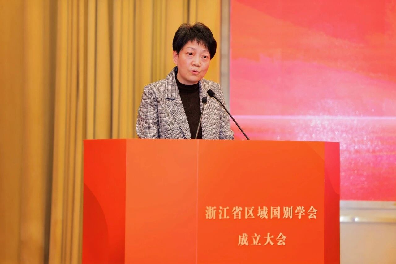 张悦代表省教育厅对学会的成立表示热烈祝贺。她强调,区域国别研究作为新兴交叉学科,对于培养参与国际事务和全球治理的卓越人才,提升我国在国际舞台上的话语权和影响力,具有重要作用。她表示,浙江省区域国别学会的成立,标志着我省在该领域的研究与人才培养进入了协同发力、体系推进的新阶段。作为为区域国别研究搭建起集学术交流、政策咨询、人才培养、成果转化于一体的高端平台,她提出三点要求:要立足育人根本,着力培养高素质国际化专业人才;要聚焦学科交叉,积极构建特色优势研究领域;要突出实用实效,不断提升服务发展能力水平。