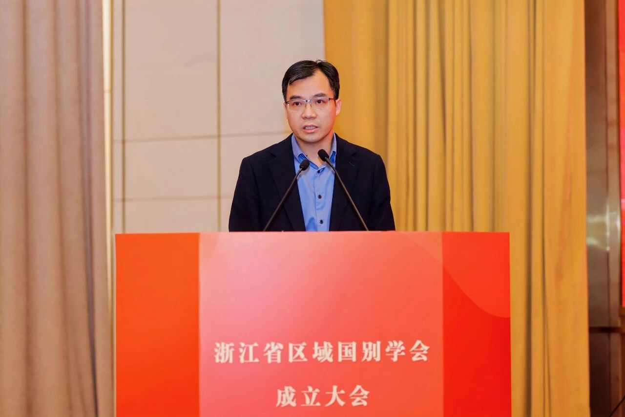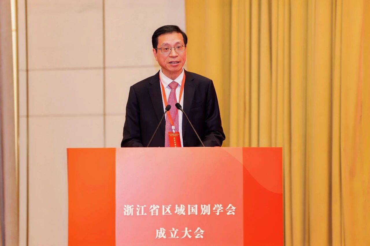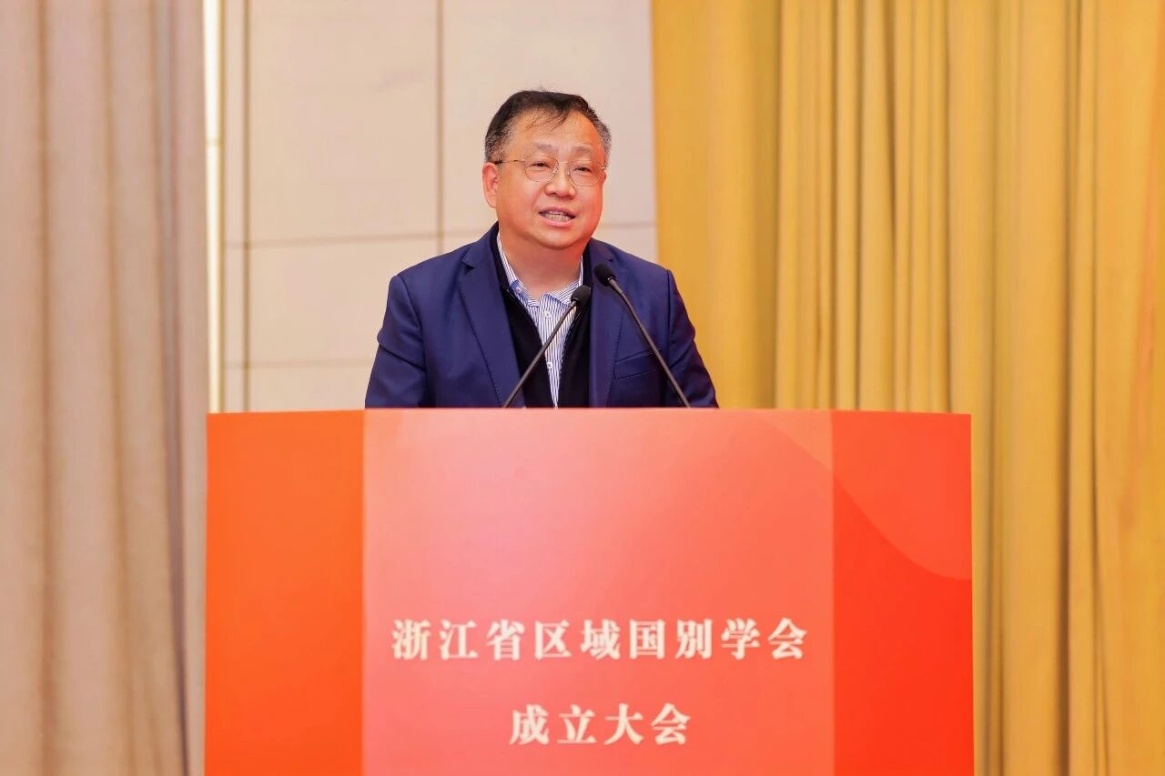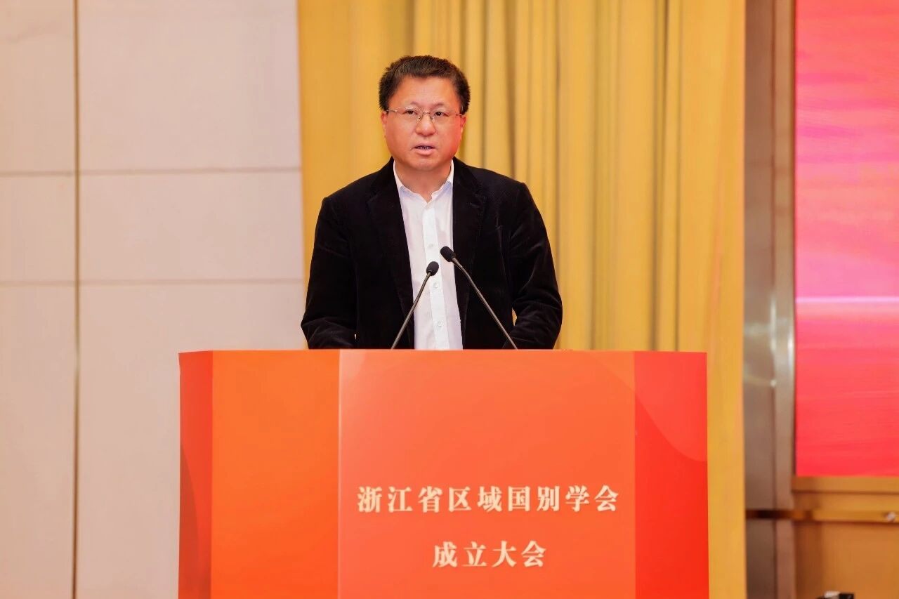 沈世成代表省委宣传部、省社科联对学会的成立表示热烈祝贺。他强调,加强区域国别研究,是构建中国特色哲学社会科学三大体系的内在要求,也是统筹发展与安全、在复杂国际环境中掌握战略主动的基础支撑。他明确了学会未来工作的四大方向:一是把牢好方向导向,坚持以党的创新理论引领研究,扎根中国实践,提炼具有世界意义的见解,夯实学术根基;二是坚持高开高走,围绕中国式现代化实践,立足国家所需与浙江所能,打造具有全国知名度和浙江辨识度的研究高地;三是深化对外研究互鉴,深入理解对象国历史与现实,推动研究成果“出海”,并善用新技术提升研究效能;四是突出实战实效,见微知著,聚焦咨政、咨商、启民与互鉴,面向现实需求产出高质量智库成果,切实服务国家战略与浙江发展。