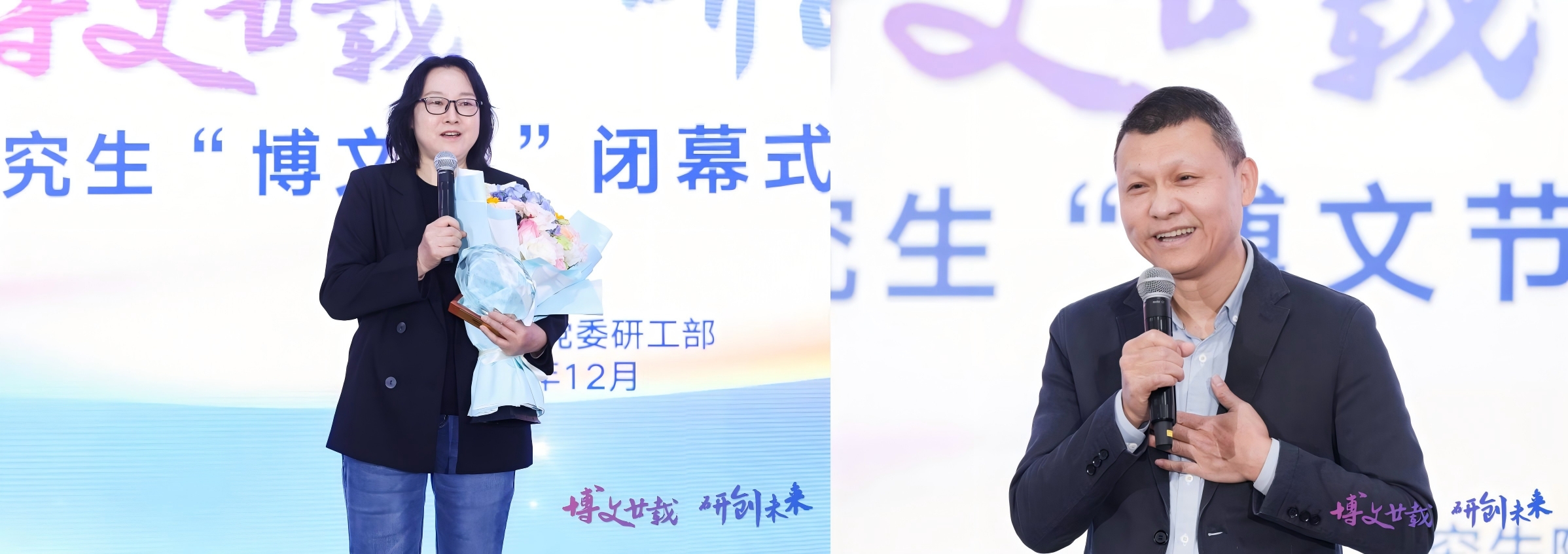何贤杰充分肯定了研究生“博文节”二十年发展成效。他指出,“博文节”始终坚守育人初心,已构筑起兼具高度、广度、深度与温度的立体化育人场域,成为学校培养“K+MAQ”型中流砥柱型研究生的重要平台。他对青年学子提出三点要求:一是永葆思想活力,将学习内化为生活方式与精神追求,在深度思考中锤炼批判性思维、拓宽认知边界,筑牢理想信念之基;二是锤炼过硬本领,以精益求精的态度钻研学术、践行实践,敢于直面真问题、攻坚硬课题,在服务国家战略与经济社会发展中增长才干;三是塑造完整品格,兼顾“文明精神”与“野蛮体魄”,涵养家国情怀、锤炼坚韧意志,努力成长为德才兼备、知行合一的“完全人物”。