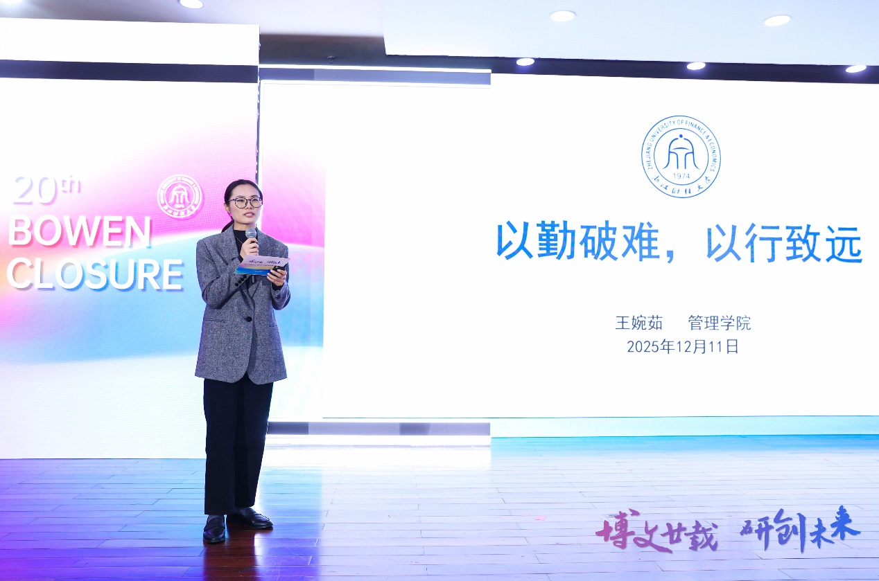 管理学院杨斯涵秉持“脚踏实地”“笨鸟先飞”的勤奋精神,结合自身经历,分享“提前规划—精准求助—痛点攻坚”的逆袭路径,最终实现自我蜕变。研究生联合培养学院潘佳艺分享通过搭建任务管理、精力管理等核心模块,构建专属“个人成长操作系统”,为在场学子提供了具体可行的方法指引。信息技术与人工智能学院徐纪元分享了自己在科研竞赛方面的经验和心得。他强调,耐得住“打地基”的寂寞,扛得住“起高楼”的压力,方能克服焦虑,勇攀高峰。研究生联合培养学院潘美莹分享了科研路上的成长历程与深刻感悟。她提出,科研一定要扎根现实,以真问题为锚,以实干为舟,用“慢思考-快行动-细打磨”三段节奏法稳住科研步调,守住初心,耐住寂寞,方能行稳致远。经济学院池诗瑶化身“学术翻译官”,分享让学术走出象牙塔的传播经验。她展现了青年学子推动知识普及、传递学术温度的责任与担当。法学院肖晶鑫分享了走向卓越的三个“心法”。她用自己的经历告诉大家勇于迈出行动的步伐,依托团队的力量,接受自己的“有限”,成为独一无二的自己也是一种“卓越”。师说星语环节,第三届“卓越之星”、管理学院研究生导师王婉茹登台分享,她结合自身学术成长与育人实践经历,勉励在场学子,要持续研读前沿优秀研究成果,保持高质量的输入,坚持问题导向意识,勇敢迈出第一步,以勤克难、以勤致远。