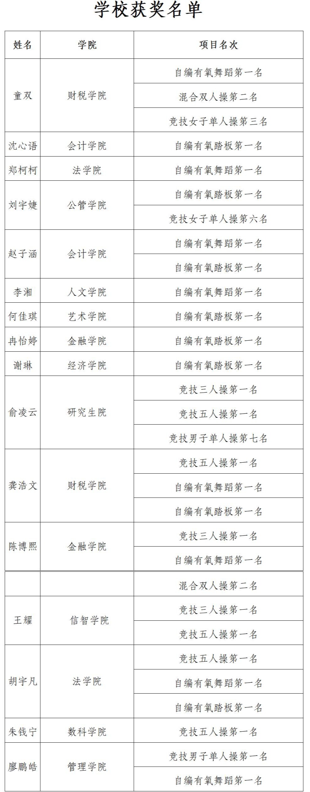 本届比赛由中国学生体育联合会主办,中国学生体育联合会大学健美操与艺术体操分会执行,吸引了来自全国各地69所高校的735余名运动员参加。我校共派出16名运动员,参加7个单项的角逐。
