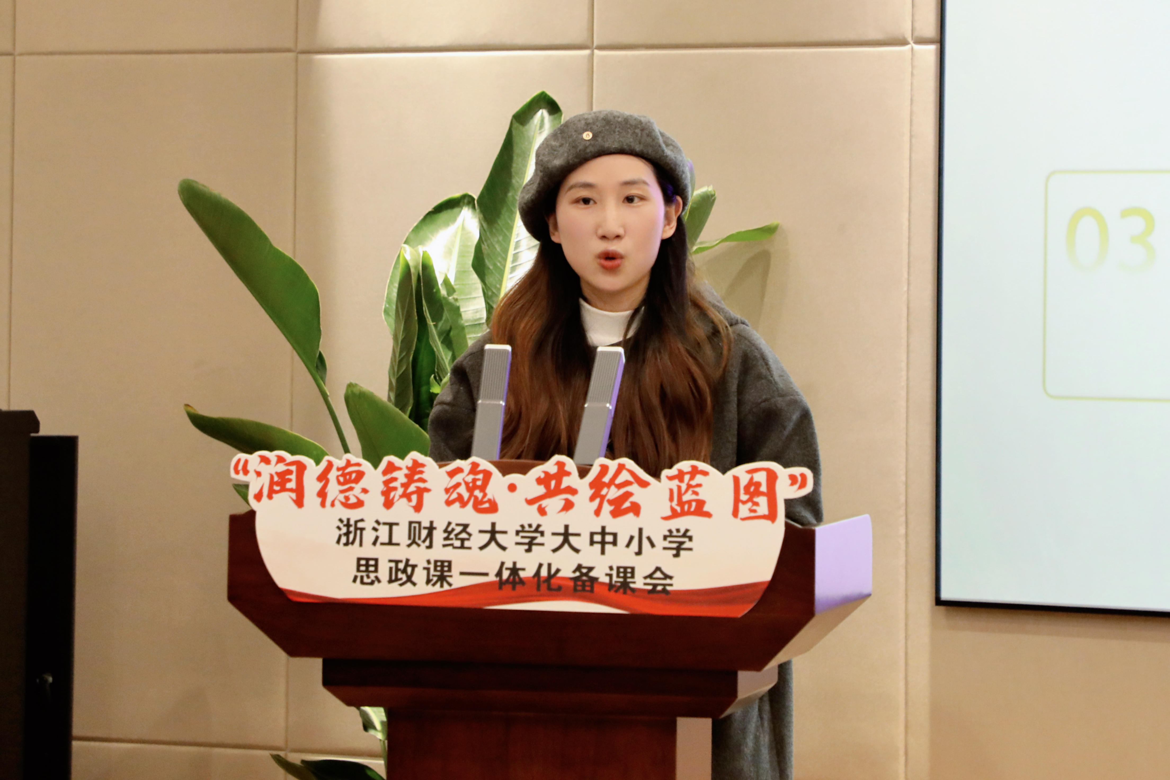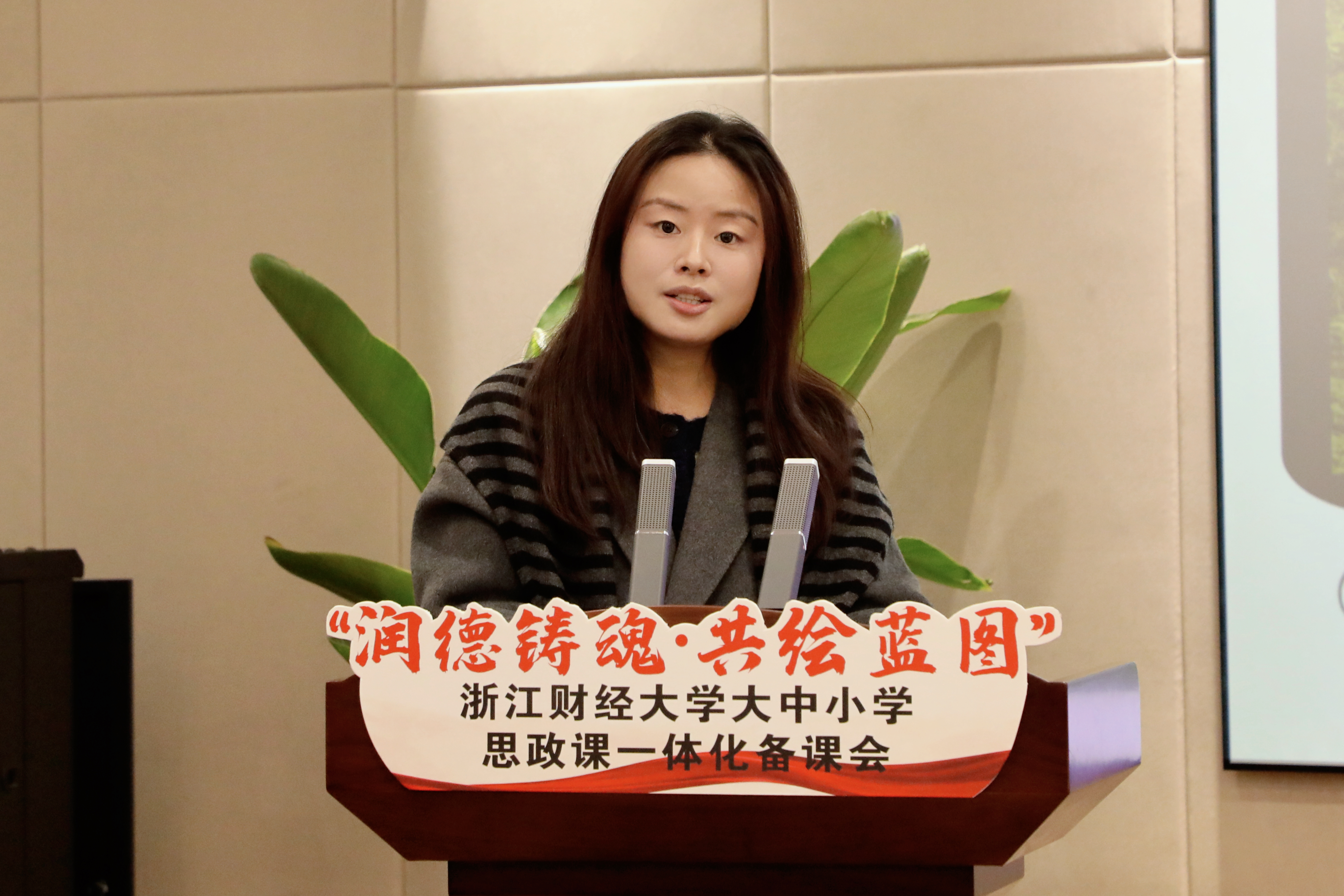 附属文海凌云小学蔡园婷、附属学正中学教师代表梁名一分别以《融情·启思·导行:小学思政课堂“三度育人”教学探索》《潮起钱塘绿生处:共筑生命家园的钱塘答卷》为题作备课交流。