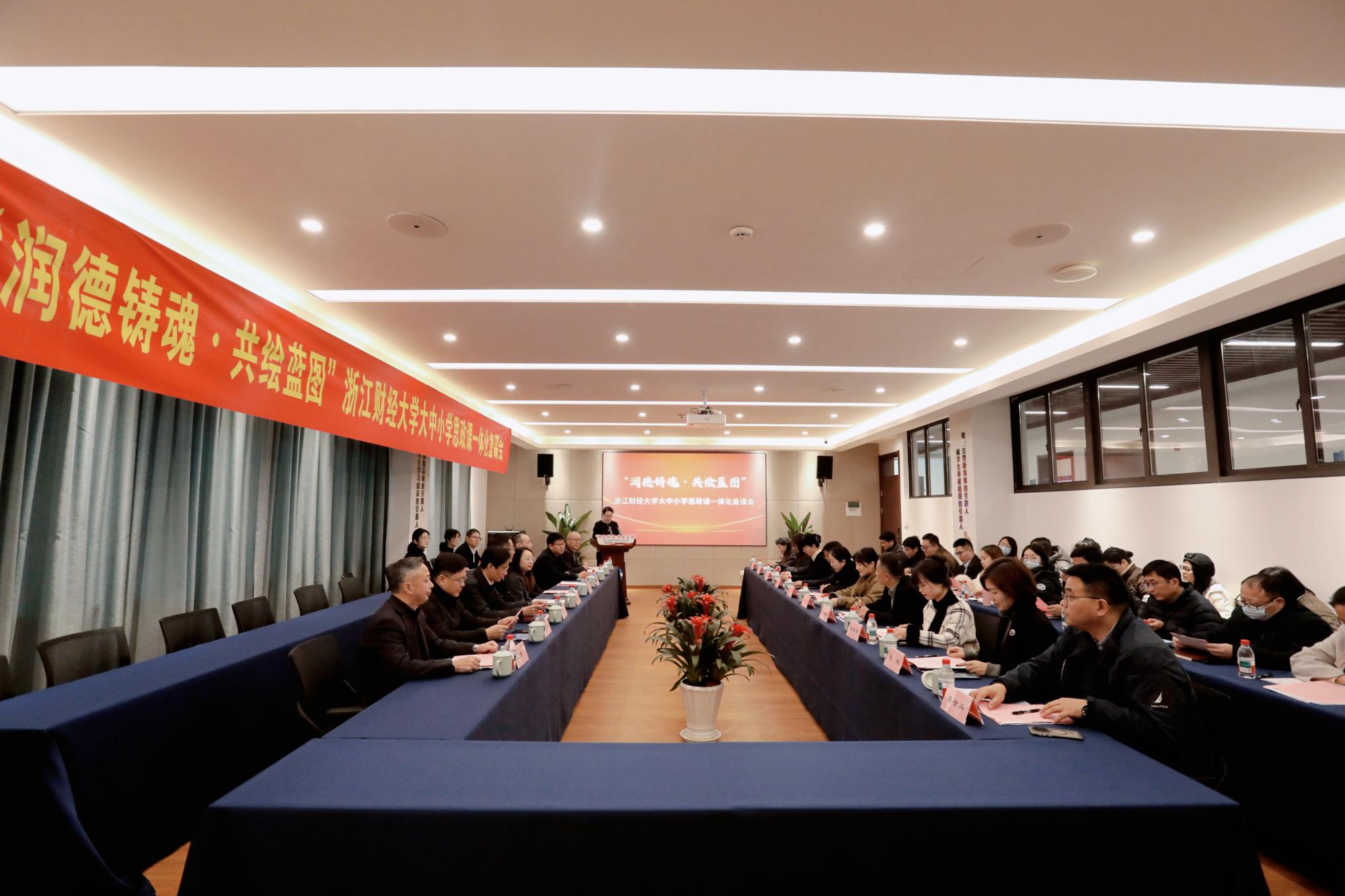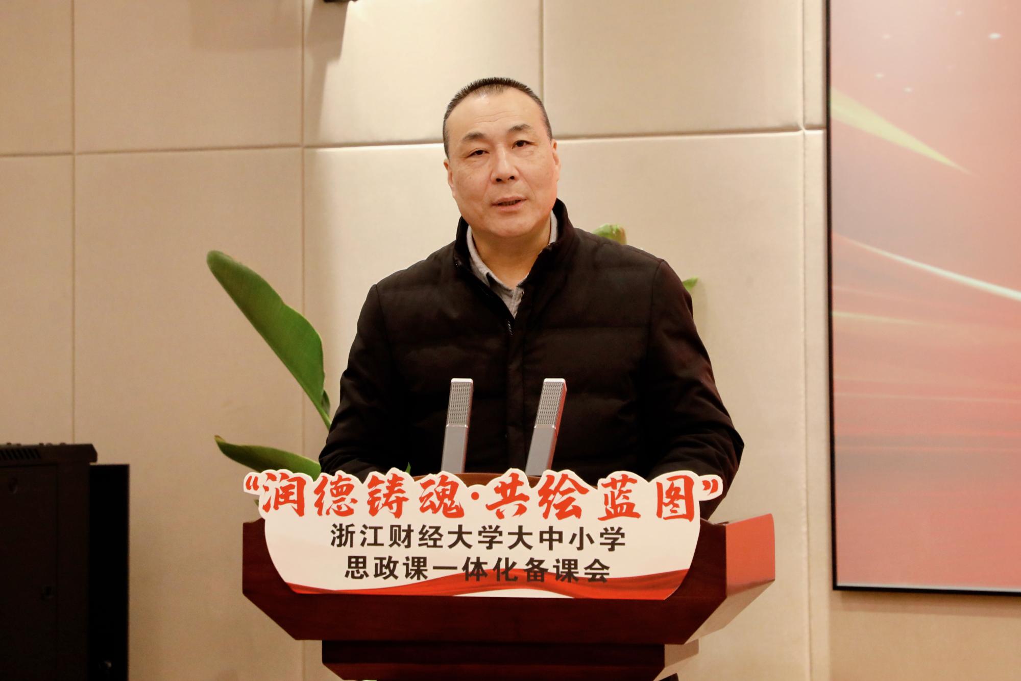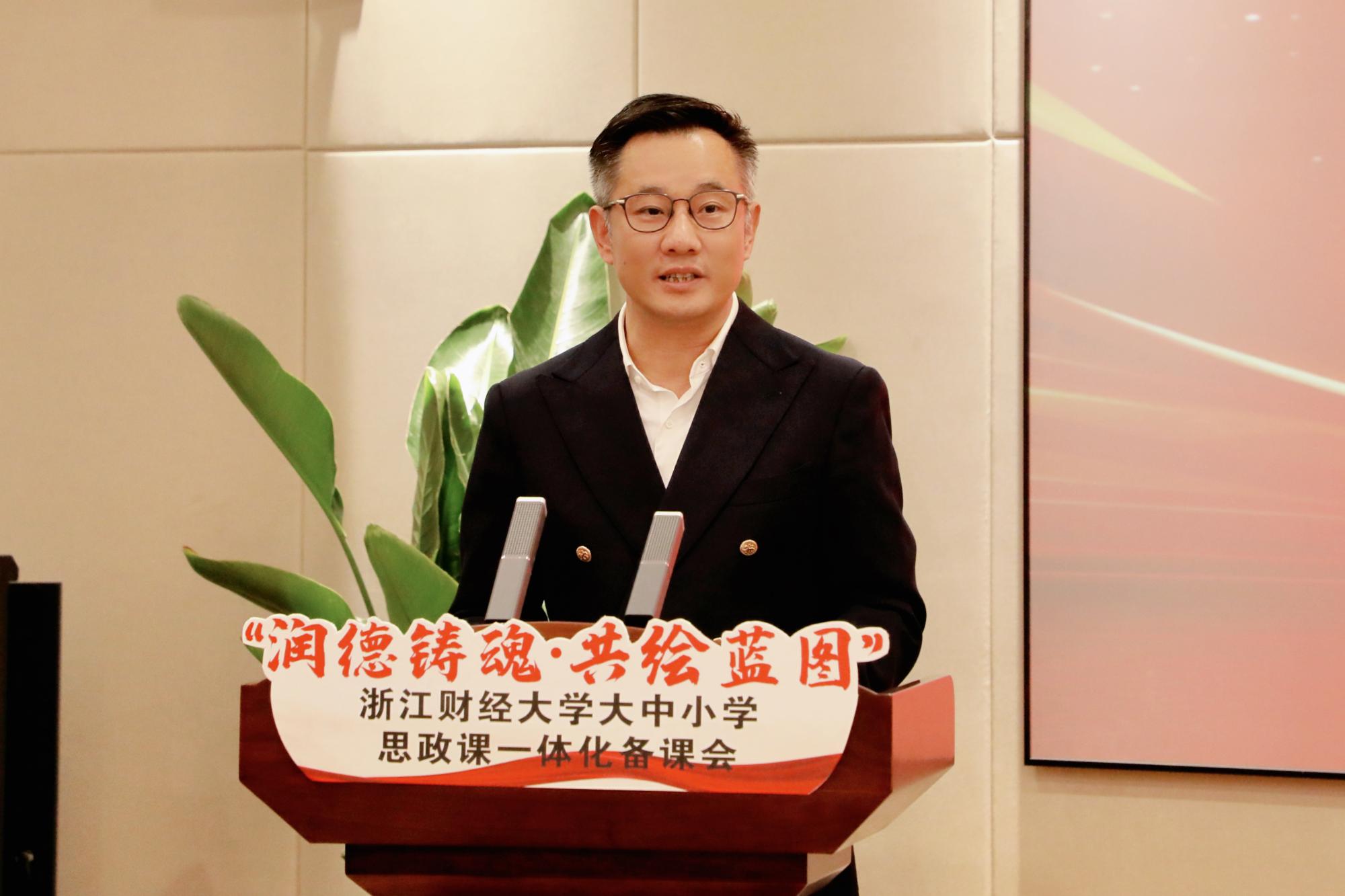 “思政教育可以给孩子带来温暖和力量。”程爽在致辞中以清晨江边观日出的感悟为引,生动阐释了思政教育如日出般温暖人心、催人奋进的育人价值。他强调,大中小学思政课一体化建设是学校落实立德树人根本任务的关键举措,学校与五所附属学校秉持“建好共同体,赋能一体化,滋养根与魂”的朴素理念,从附属学校筹建到课程共建,从师资共享到活动共办,逐步构建起大中小学思政教育协同发展的良好生态。学校将围绕“高质量教材建设、理论武装、思政队伍建设”三大改革领域深耕细作,构建起“理论研究—教材编写—课程建设—实践育人”的完整育人链条,并就建设好“新时代真理的味道”大思政品牌提出三点要求:一是举全校之力建好会计学院试点,丰富完善思政课程体系,牵引带动育人新场域开拓、思政教育一体化建设等取得新的突破。二是充分发挥“八八战略”研究院、省重点马院和党史党建学科建设成果的赋能作用,挖掘红色资源,形成具有浙财特色的原创性教育成果。三是联合社会各方力量,打造“新时代真理的味道”思政品牌,让思政教育更具时代感与实效性。