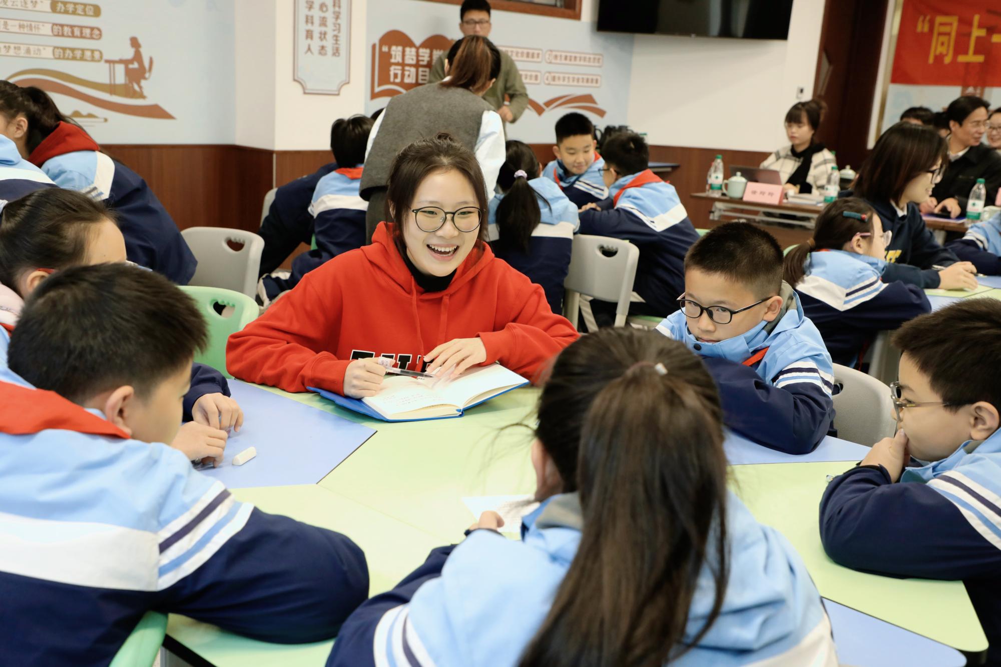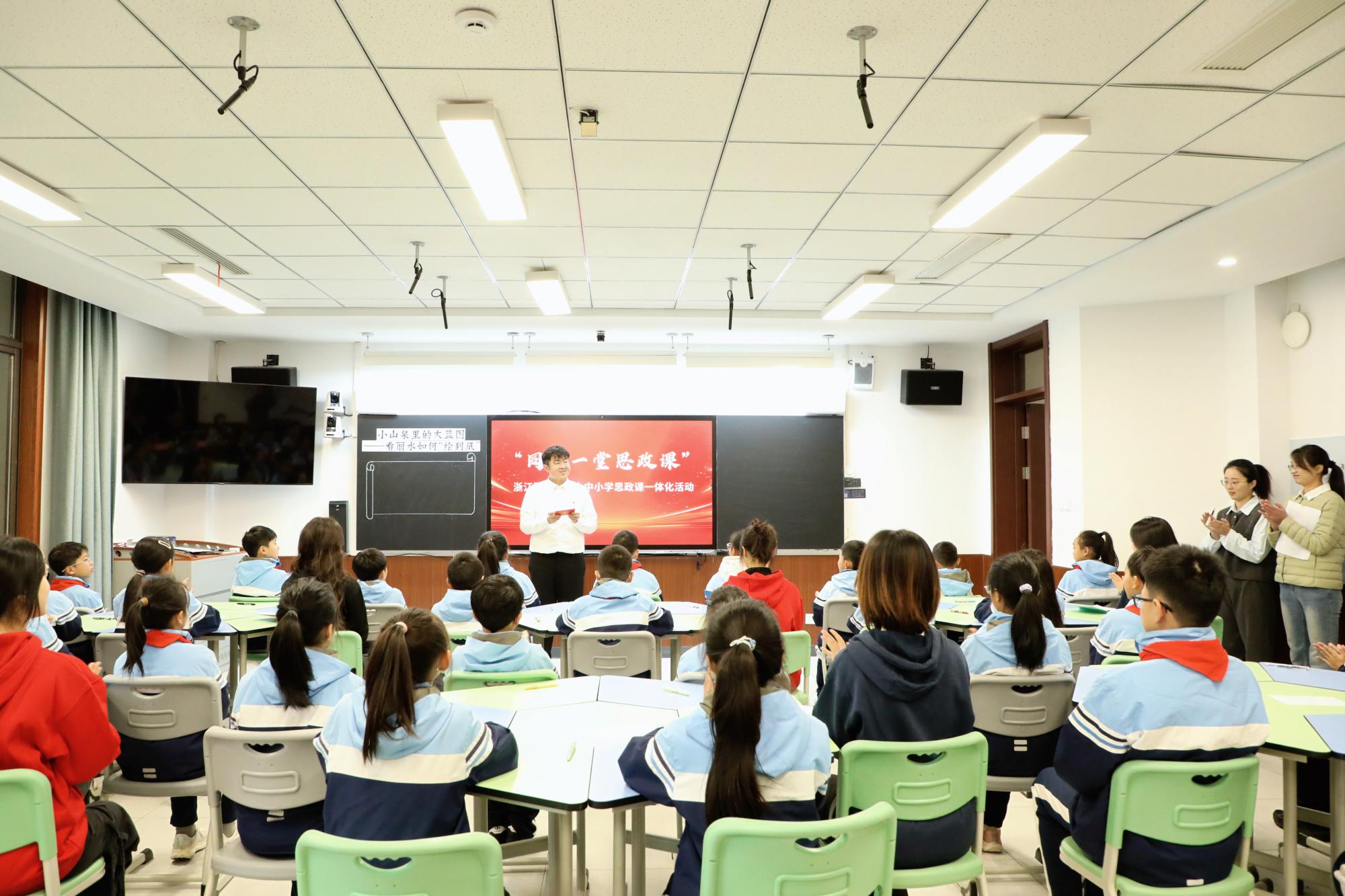 本网讯 冬日暖阳映校园,润德铸魂谱新篇。12月23日,“润德铸魂·共绘蓝图”浙江财经大学大中小学思政课一体化备课会暨“同上一堂思政课”活动在浙江财经大学附属文海凌云小学举行。省教育厅宣教统战处干部俞婷,校党委副书记程爽,钱塘区教育局党委委员、副局长江志明,校发展委员会主席、浙江省“八八战略”研究院院长李金昌,浙江理想教育研究院专家徐玲玲,学校宣传部、社会合作处、图书馆、马克思主义学院、会计学院、附属文海凌云小学、附属学正中学负责人及师生代表参加活动。备课会由会计学院党委书记张虹主持。
