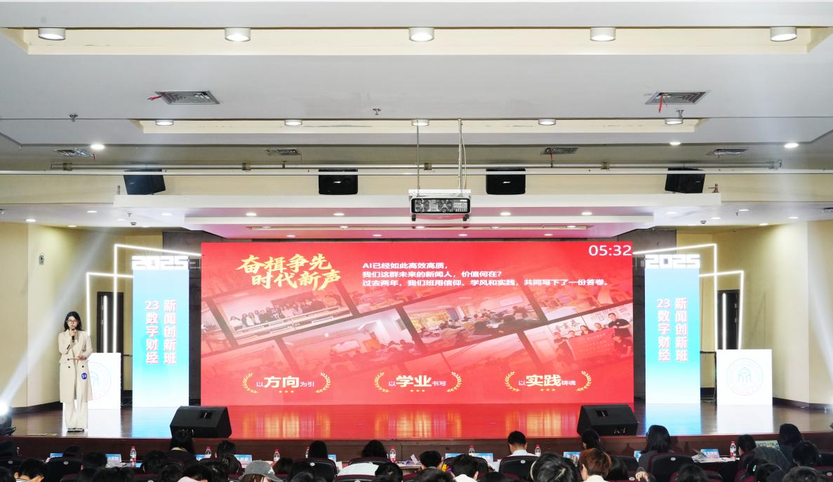 23数字财经新闻班把“信仰”写进标题,把“学风”融进导语,把“实践”嵌入排版,共同写下一份“未来新闻人”的答卷:建立学习小组,开展学术沙龙,组织四级六级备考互助,推动全员共进;创办“鹅湖新传”公众号,发表多篇报道,锻炼新闻采编与内容生产能力,走进中新社、浙江广播电视台、钱塘区融媒体中心,拓宽专业视野。平均学分绩点4.04,最高4.76,英语四级通过率100%,六级通过率近80%,斩获全国大学生广告艺术大赛三等奖、“两山杯”全国大学生创新创业大赛全国优秀奖等国家级奖项8人次,浙江省乡村振兴大赛银奖等省级奖项2人次,校级奖项20余人次,锻造“提笔能写、对镜能讲、举机能拍、数据会跑”的数字财经新闻“新锐”力量。