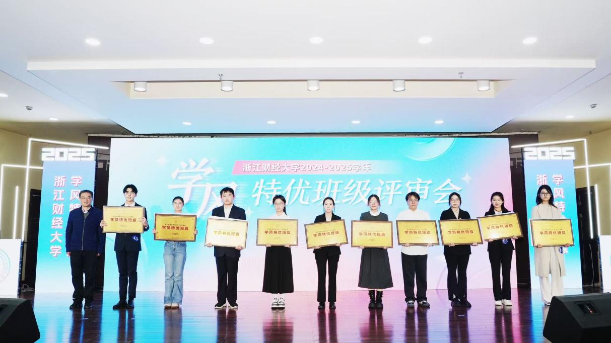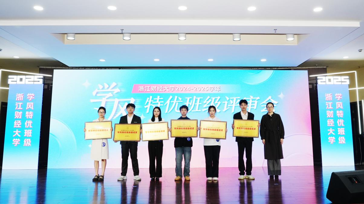 经现场评审,23国锐数智管理创新班、23智能审计创新班、23金融学卓越人才创新班、23经济学拔尖人才创新班、24数智会计拔尖班、24法学非诉班、23财税1班、23英语2班、23数字财经新闻班、23应用统计4班等10个班级获浙江财经大学2024-2025学年“学风特优班级”荣誉称号,23金融科技班、23金融学类8班、24审计1班、24公管3班、23软件工程3班、23视传2班等6个班级获“学风特优班级”提名奖。