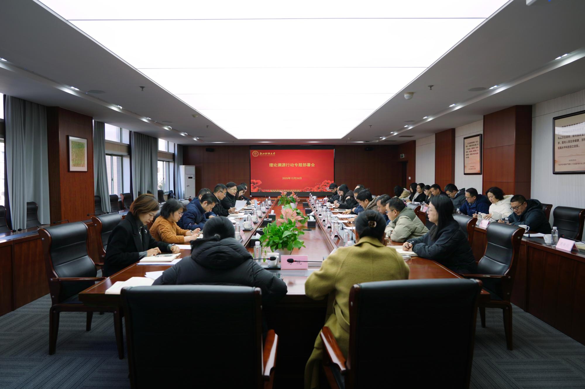本网讯 为深入贯彻学校党委《关于推进党的建设与事业发展深度融合的实施意见》,12月26日,学校召开理论溯源行动专题部署会。会议聚焦理论溯源行动的战略意义与实施路径,明确了下一步工作方向。校党委副书记程爽主持会议。宣传部、组织部、发展规划处、教务处、科研处、人事处负责人及各二级党组织书记参加会议。