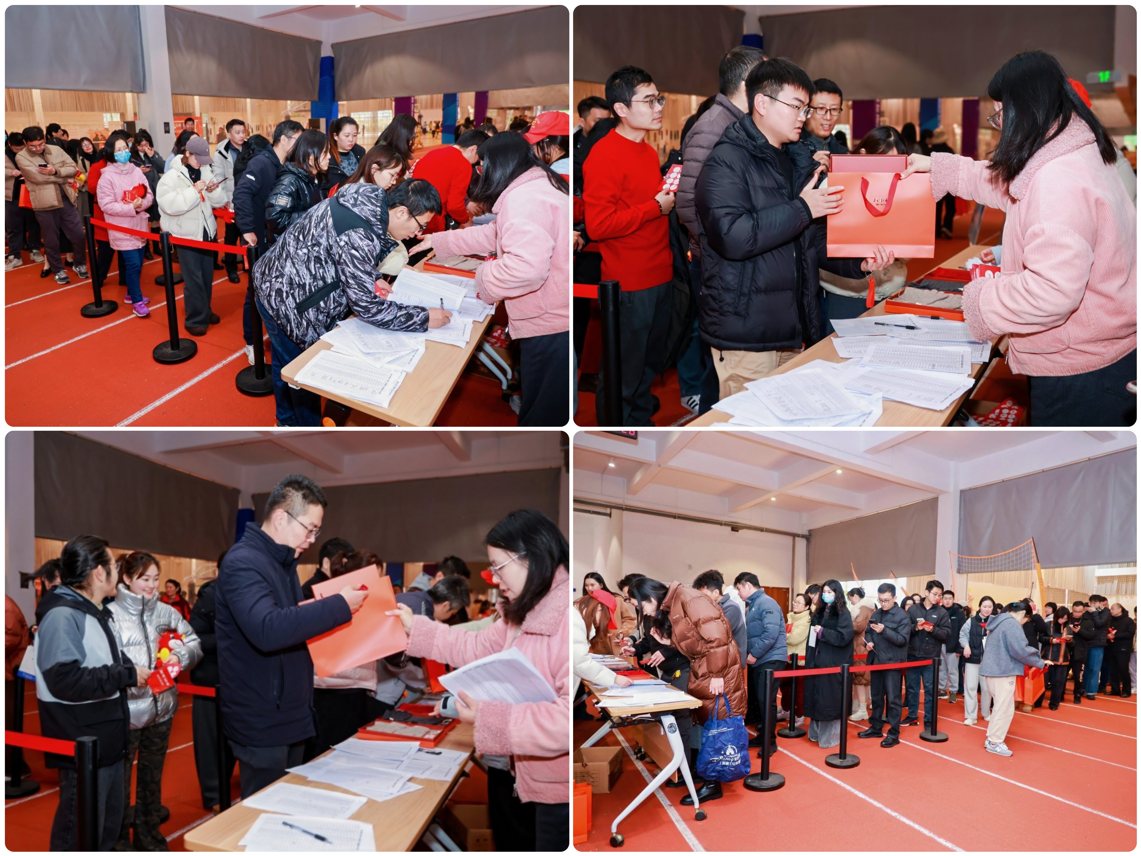 活动现场暖意融融,处处洋溢着辞旧迎新的热烈氛围。签到处前,老师们凭菜园码有序签字领取活动券与抽奖券,一张张满载期待的笑脸,开启了本次嘉年华的欢乐之旅。一份份精心准备的小礼品陆续送出,将好运与祝福实实在在送到教职工手中。活动券上的打孔标记,不仅是领奖的凭证,更见证了这份属于“浙财家”的暖心福利。“老师新年好!”“祝您新岁顺遂、万事胜意!”志愿者们热情的问候不绝于耳,将来自“浙财家”的真挚祝福传递给每一位教职工。大家纷纷在主题展板前驻足合影,用镜头定格与“浙财家”相伴的温馨时刻,定格这份属于菜园人的温暖与喜悦。