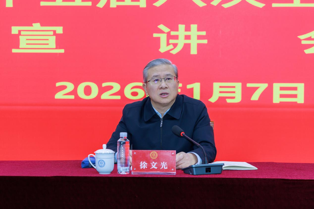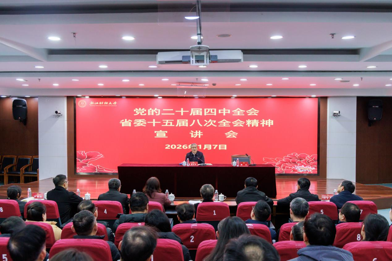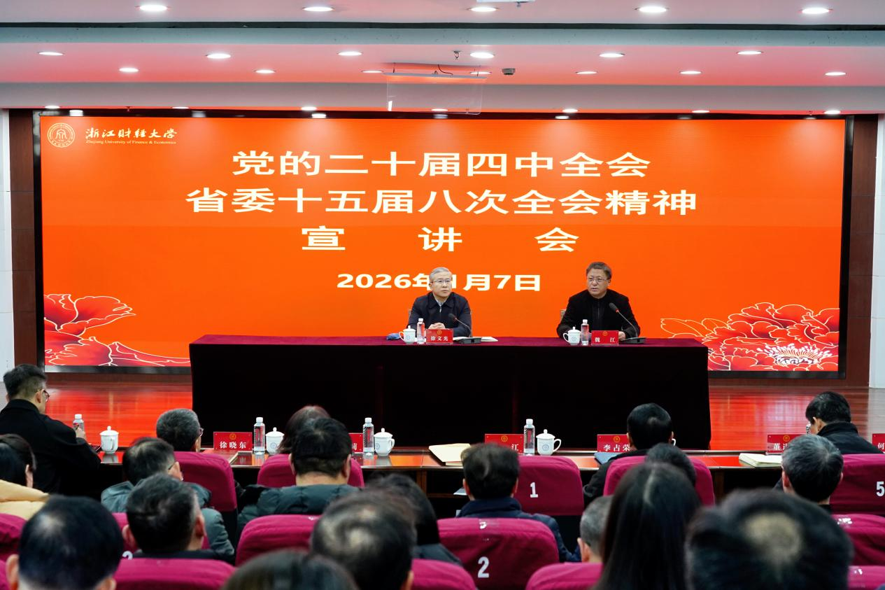 本网讯 1月7日,省委常委、常务副省长徐文光来浙江财经大学宣讲党的二十届四中全会精神和省委十五届八次全会精神。党委书记、校长魏江主持宣讲会。
