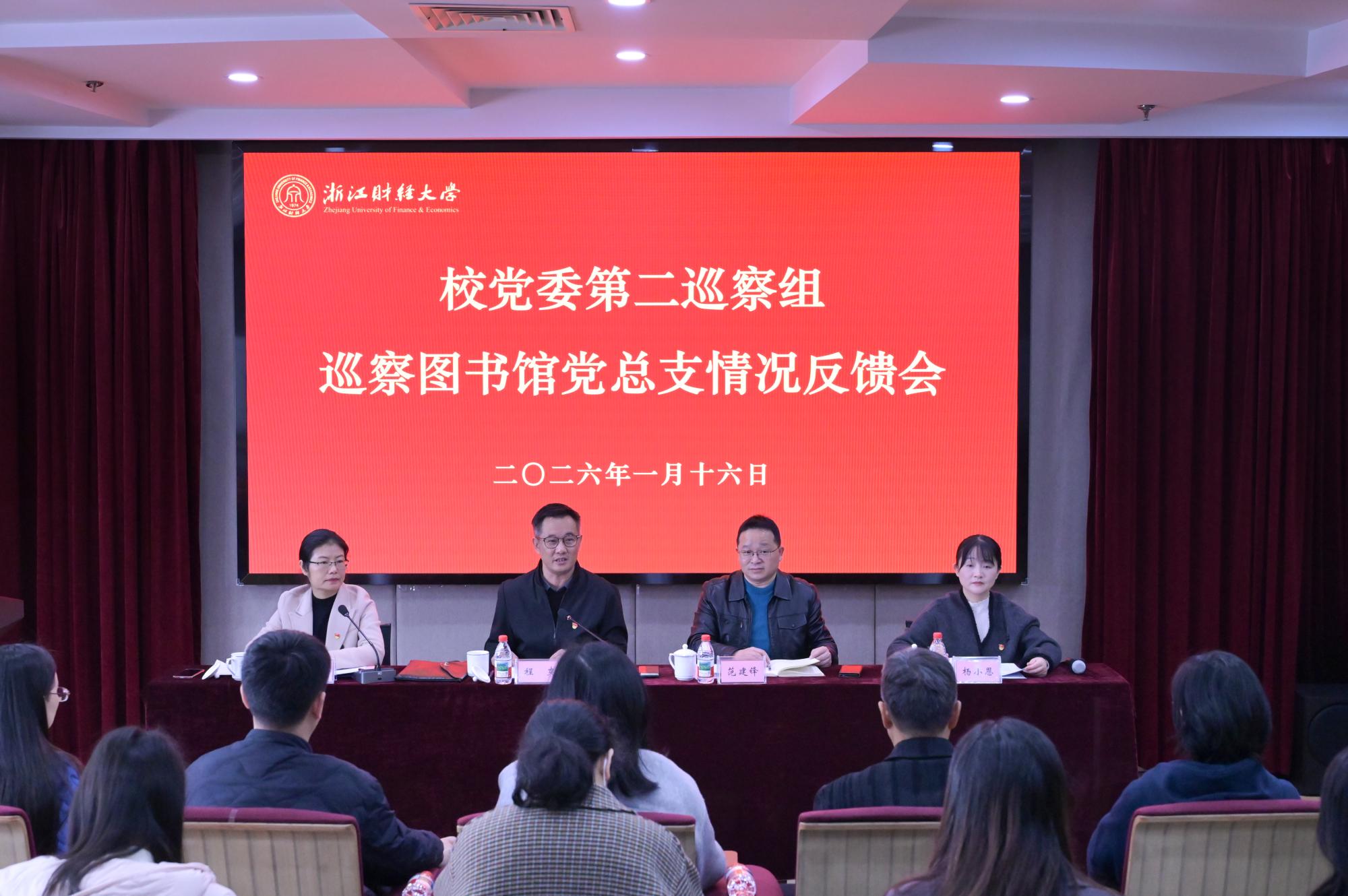 第一巡察组副组长沈晓敏,第二巡察组副组长谢敏分别向会计学院党委、图书馆党总支反馈巡察意见。会计学院党委书记张虹、图书馆党总支书记杨小恩分别就落实巡察反馈意见作表态发言。