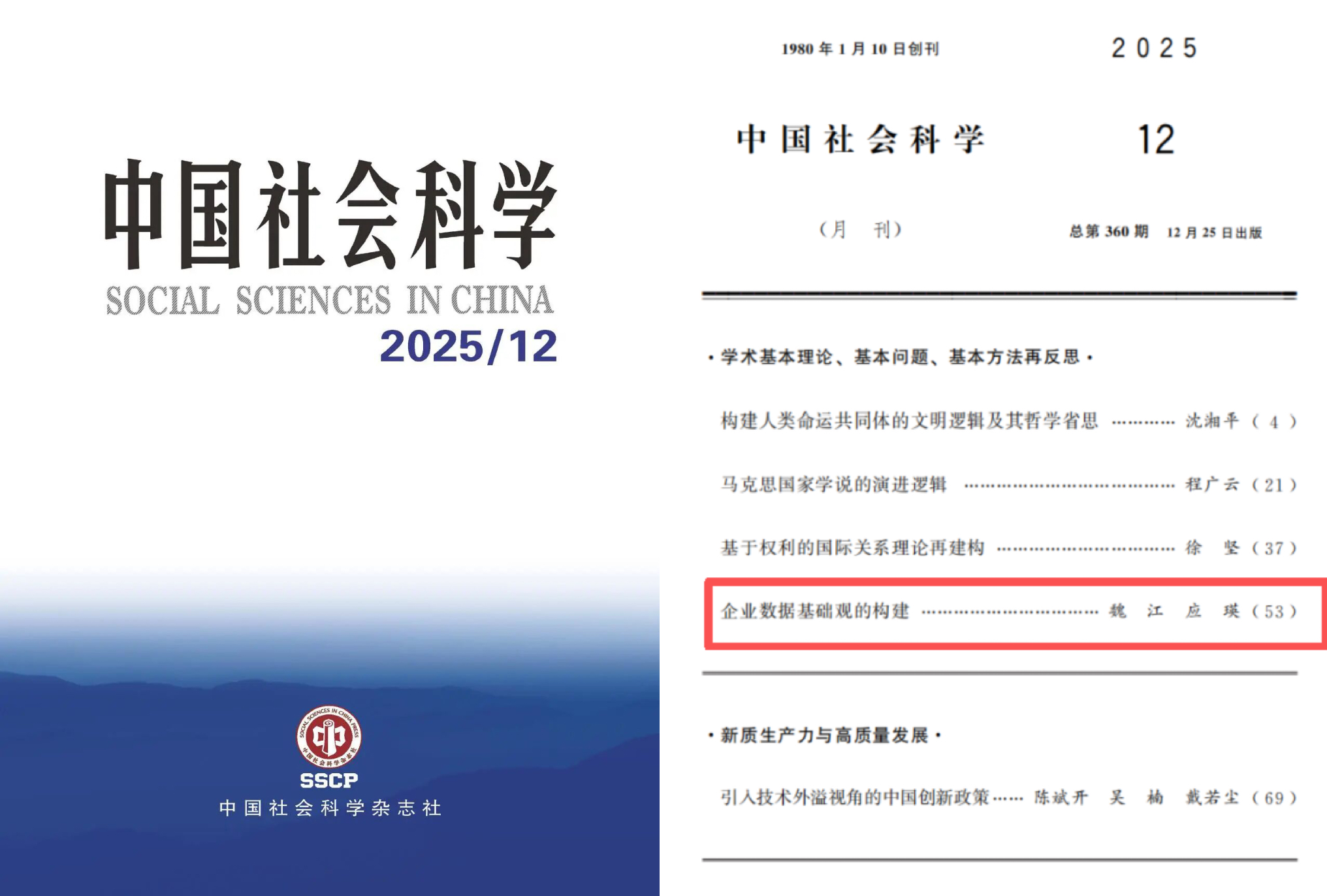 本网讯 2025年收官之月,我校魏江教授与应瑛教授合作在哲学社会科学顶级期刊《中国社会科学》重磅刊发题为《企业数据基础观的构建》的学术论文。该研究扎根数字时代中国企业的管理实践,深入阐述了数据要素转化为持续竞争优势的内在逻辑与理论机制,建构起“数据基础观”(Data-Based View)原创性理论。该成果不仅为数字经济时代的企业战略管理贡献了前沿的理论指引,也标志着我校管理学科在基础理论创新与自主知识体系构建方面取得突破性进展。