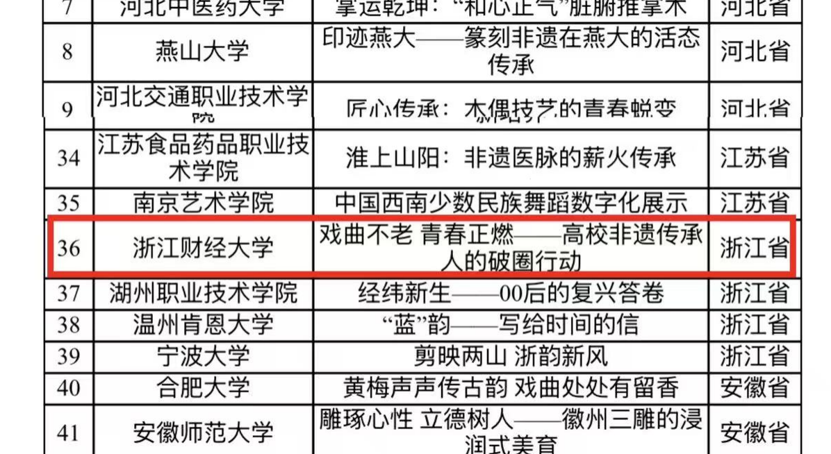 本次入选标志着戏曲文化传承活动从校园走向社会,充分彰显高校在传统文化创新传播中的示范引领作用。学校融合“课内、校内、校外”三个课堂传承戏曲文化。在课程筑基方面,开设戏曲选修课程,并开展教研活动,为学生搭建专业戏曲学习平台;在社团聚力方面,举办“戏曲进校园”活动、邀请名家交流,让大家近距离感受戏曲艺术的魅力;实践方面,持续10年开展非遗戏曲专项调研活动,探寻戏曲活态传承的密码。依托三个课堂协同发力,戏曲文化得到蓬勃发展。戏曲社获得浙江省优秀社团、中央电视台《一鸣惊人》周冠军、大学生戏剧节组织奖等50多项荣誉,被中国青年报评为2024年度“最令人心动的社团”。潘怡娜成功入选2024年国家艺术基金青春版《牡丹亭》青年人才培养计划。