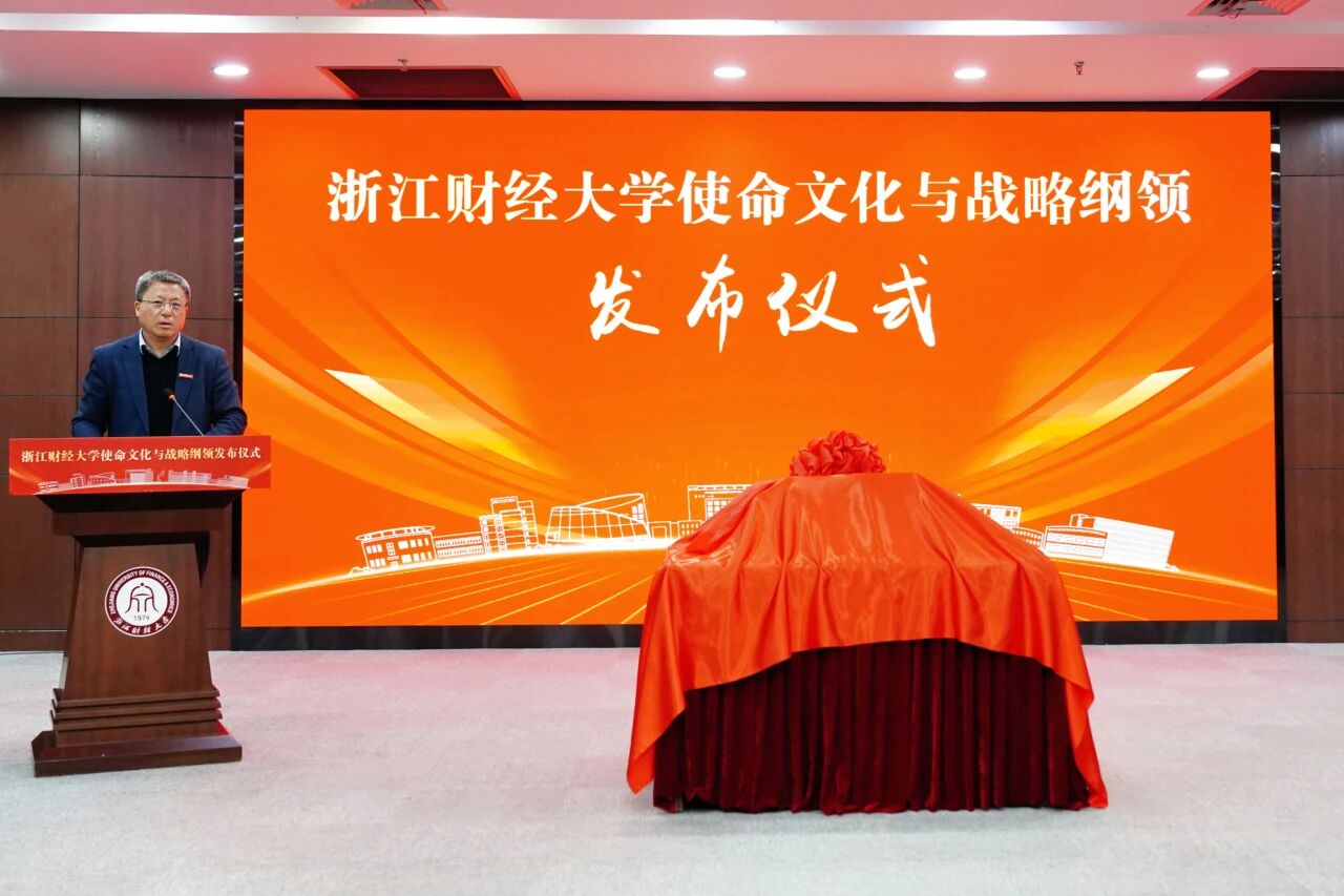 在全场热烈掌声中,魏江、陈衍泰、郑亚莉、李占荣、徐晓东、董进才、程爽、何贤杰、申屠莉共同为《浙江财经大学使命文化与战略纲领》揭幕。鲜红的绸缎缓缓落下,《纲领》文本在灯光下熠熠生辉,现场气氛达到高潮。这一刻,是历史的致敬,更是未来的开启;这一刻,浙财的精神血脉被再次唤醒,前行的方向更加清晰坚定。