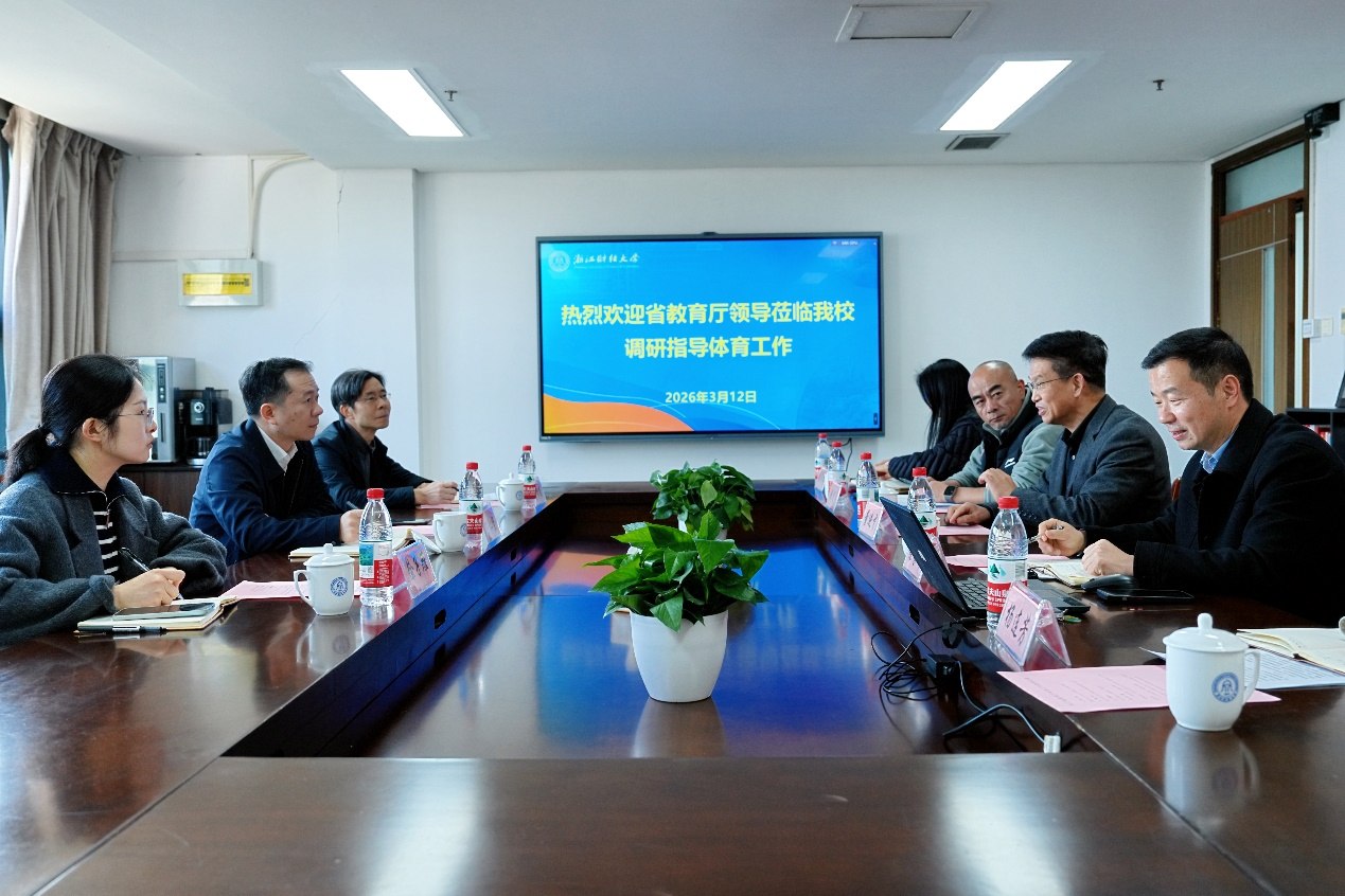 本网讯 3月12日,浙江省教育厅党组成员、副厅长陈仁坚一行来校调研体育工作。党委副书记、校长陈衍泰热情接待,校党委委员、副校长董进才陪同调研。
