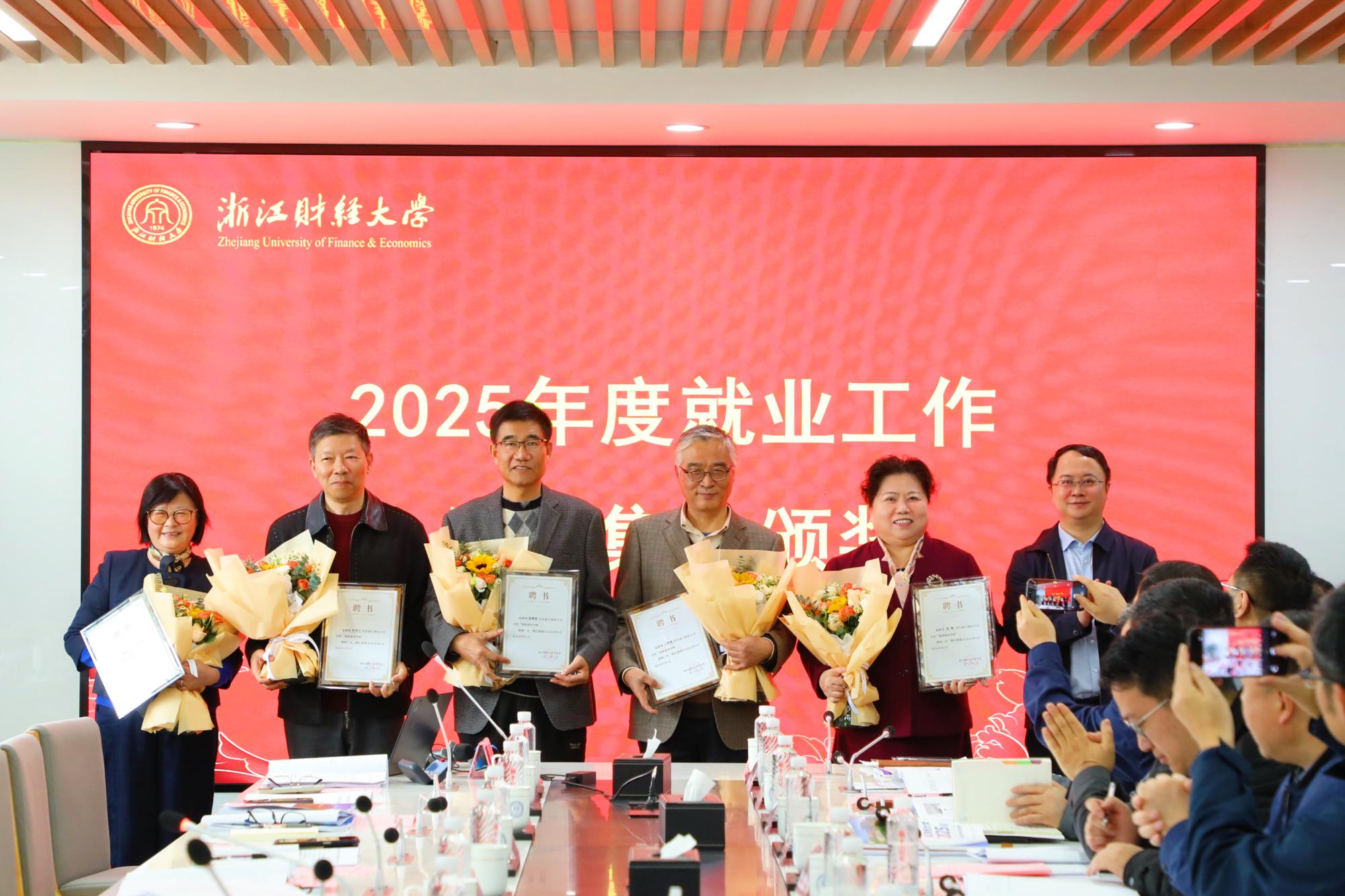 陈衍泰为2025年度招生宣传工作先进集体、就业工作先进集体颁授表彰,并聘请老同志担任学校“银龄就业导师”,为招生就业工作提质增效注入新力量。