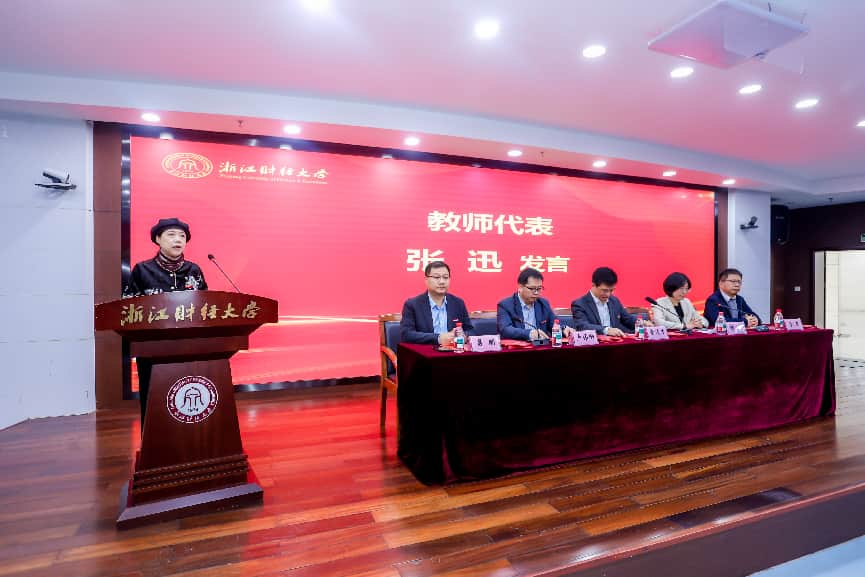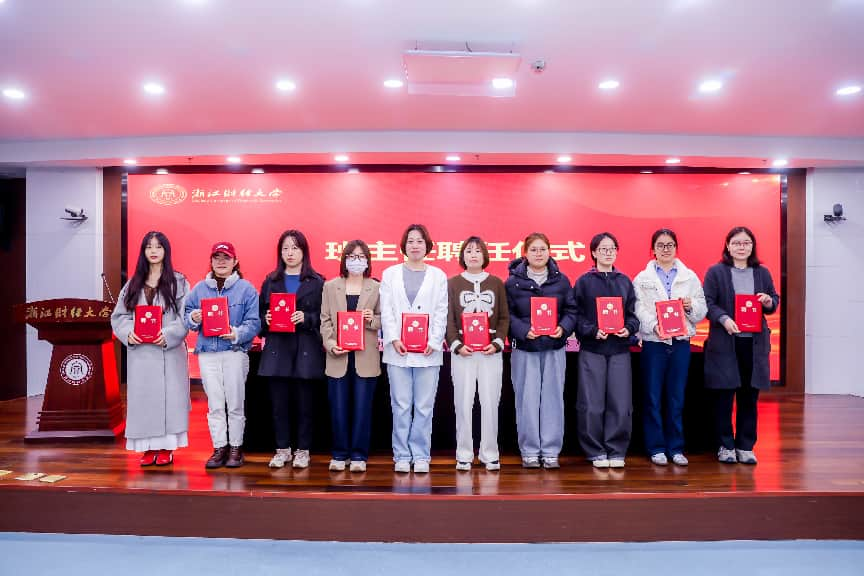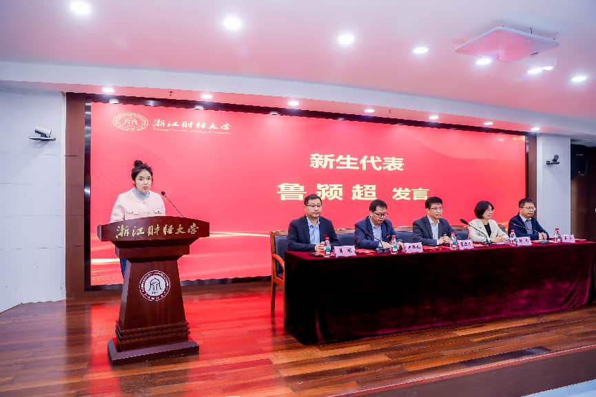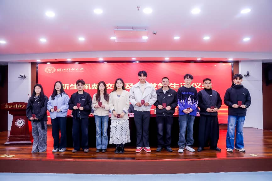 典礼现场还举行了新生代表佩戴校徽、颁发学生证以及班主任聘任等仪式。一枚枚校徽承载着浙财的精神底蕴,一本本学生证开启了全新的求学征程。