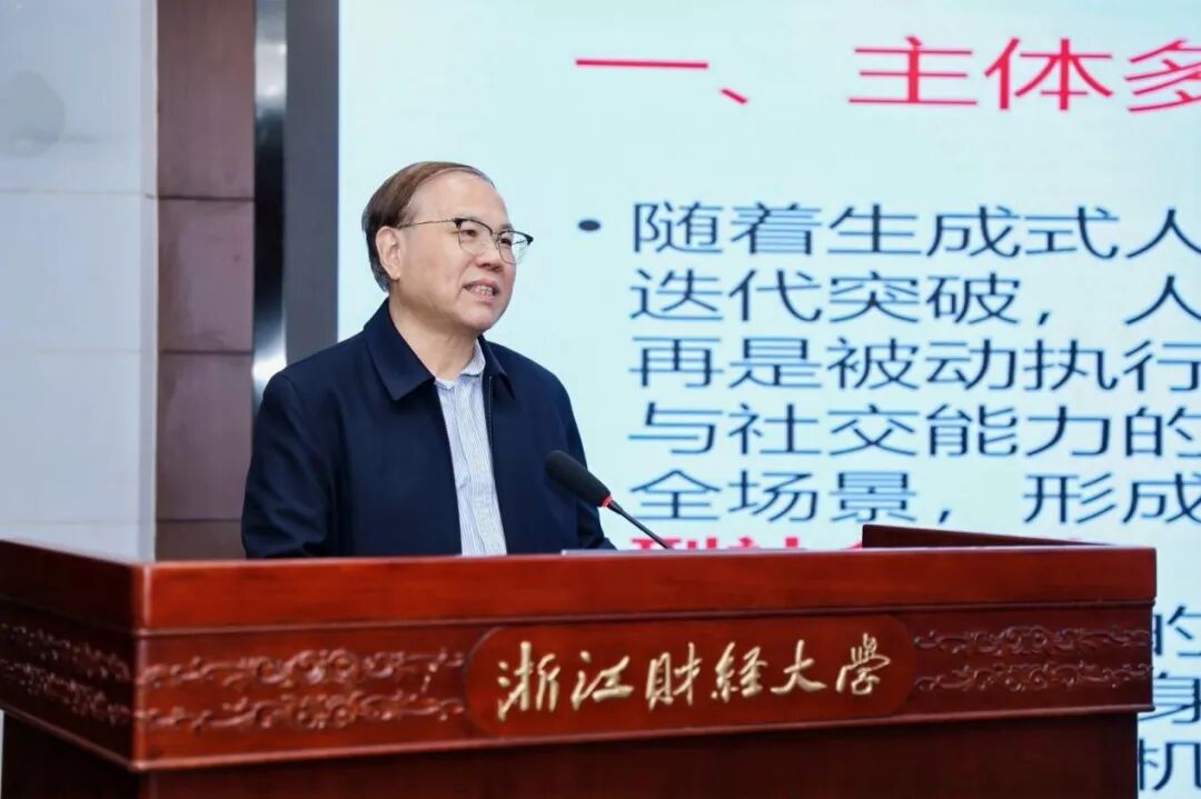 宋林飞围绕“数智时代社会运行生态变迁与治理创新”作主旨报告。他指出数字时代社会运行已形成人机共生、命运共同体的新生态。面对人工智能快速发展,强调应重视人的创造力与想象力,推动社会治理创新,加强中西方学术对话,构建多元社会主体,积极应对社会结构变迁与协调问题。