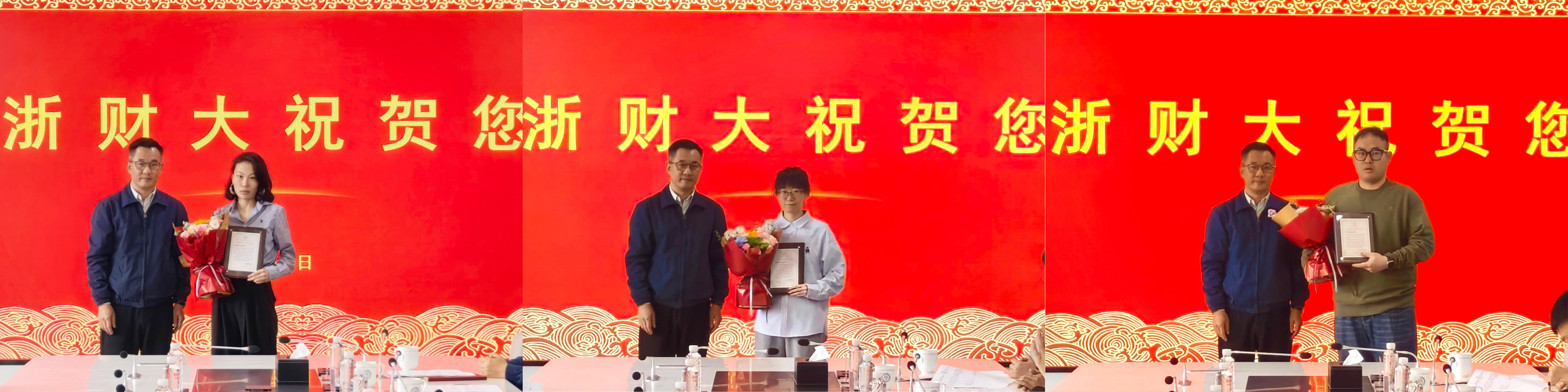 程爽为新入选省级人才颁发“浙财大祝贺您”荣誉牌并送上鲜花