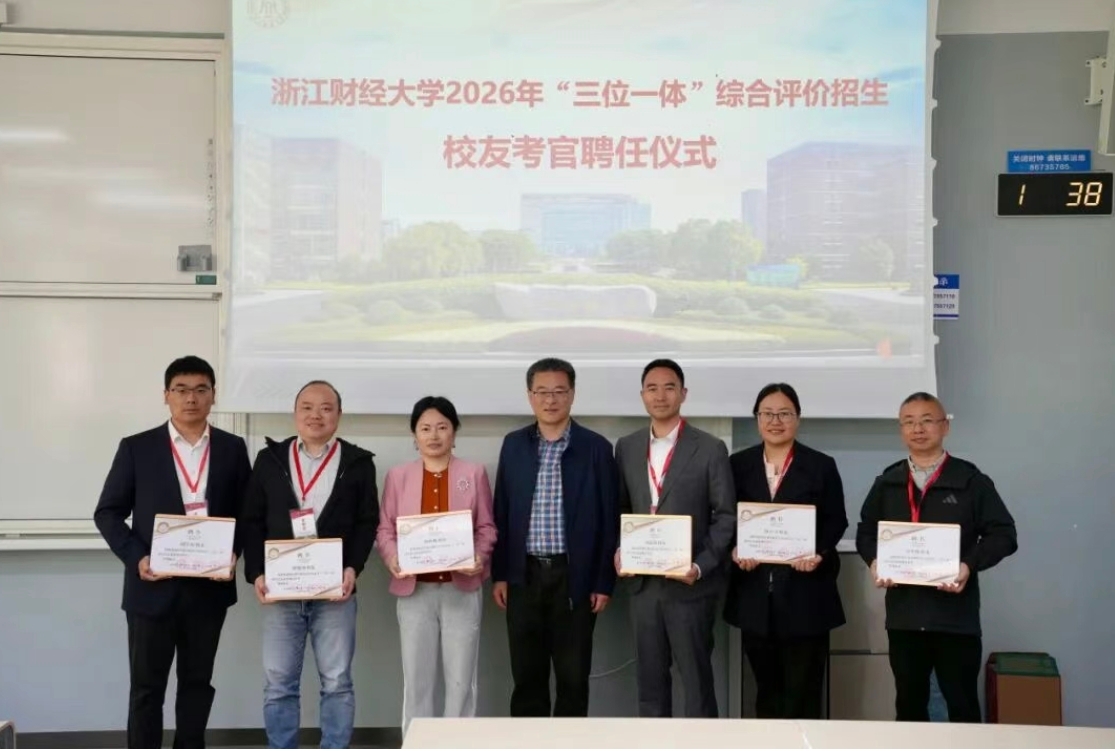 当天,学校还举行了校友考官聘任仪式,校党委副书记徐晓东为校友考官颁发聘书。校友们纷纷表示:“回到母校当考官,既是荣誉,更是责任。希望能为母校选出真正热爱财经的后浪。”