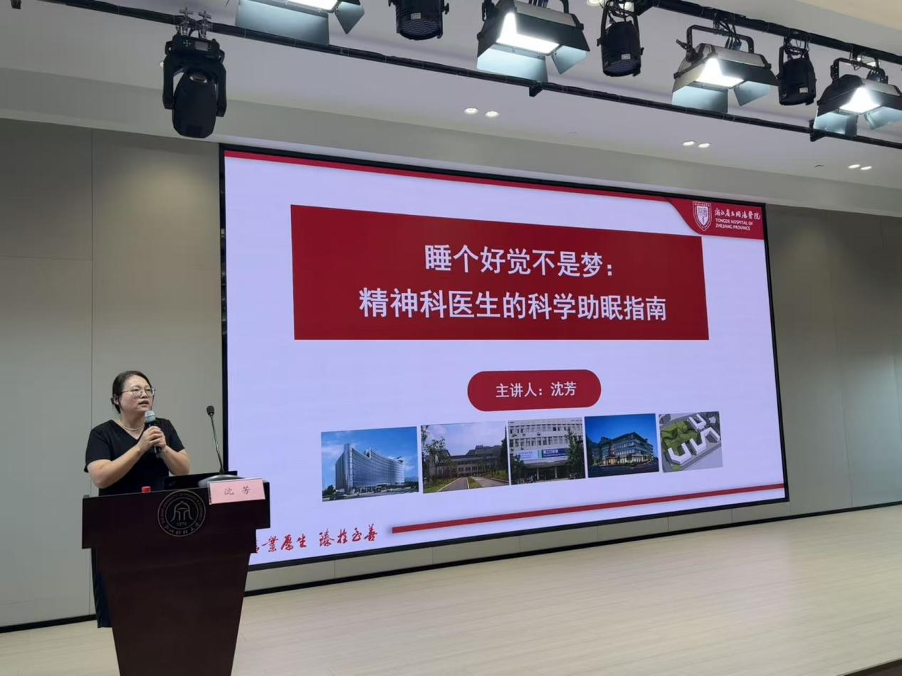 省立同德医院心理科副主任医师汤路瀚以“亲子沟通的艺术”为题,通过真实案例拆解家庭沟通中的代际冲突,传授非暴力沟通技巧。精神科副主任医师沈芳以“睡个好觉不是梦:精神科医生的科学助眠指南”为题,结合丰富生活实例,生动讲解了常见睡眠问题的表现与成因,深入剖析影响睡眠的“真凶”,并系统介绍了科学评估与改善睡眠质量的方法。精神科主任医师李晓一以“与情绪共存,享幸福生活”为主题,围绕时代背景、压力觉察、焦虑症识别、情绪管理十项原则等内容进行了深入浅出的讲解。