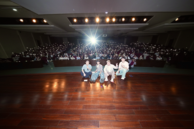 杭州一支麦脱口秀俱乐部负责人同炎携等多位专业喜剧人受邀登台,把容貌焦虑、感情困惑、自我发展等校园高频话题写进段子,用“梗”拆解焦虑,用笑点直击共鸣。当古诗、成语、历史典故等传统文化变成了全场参与的互动话题,同学们在爆笑中发现知识不只是试卷上的考点,更是可以“玩”起来、“用”起来、“创”起来的生活素材。感受学习从纪律驱动升级为兴趣驱动的快乐,产生因深厚的文化积累相聚浙财的自豪感。